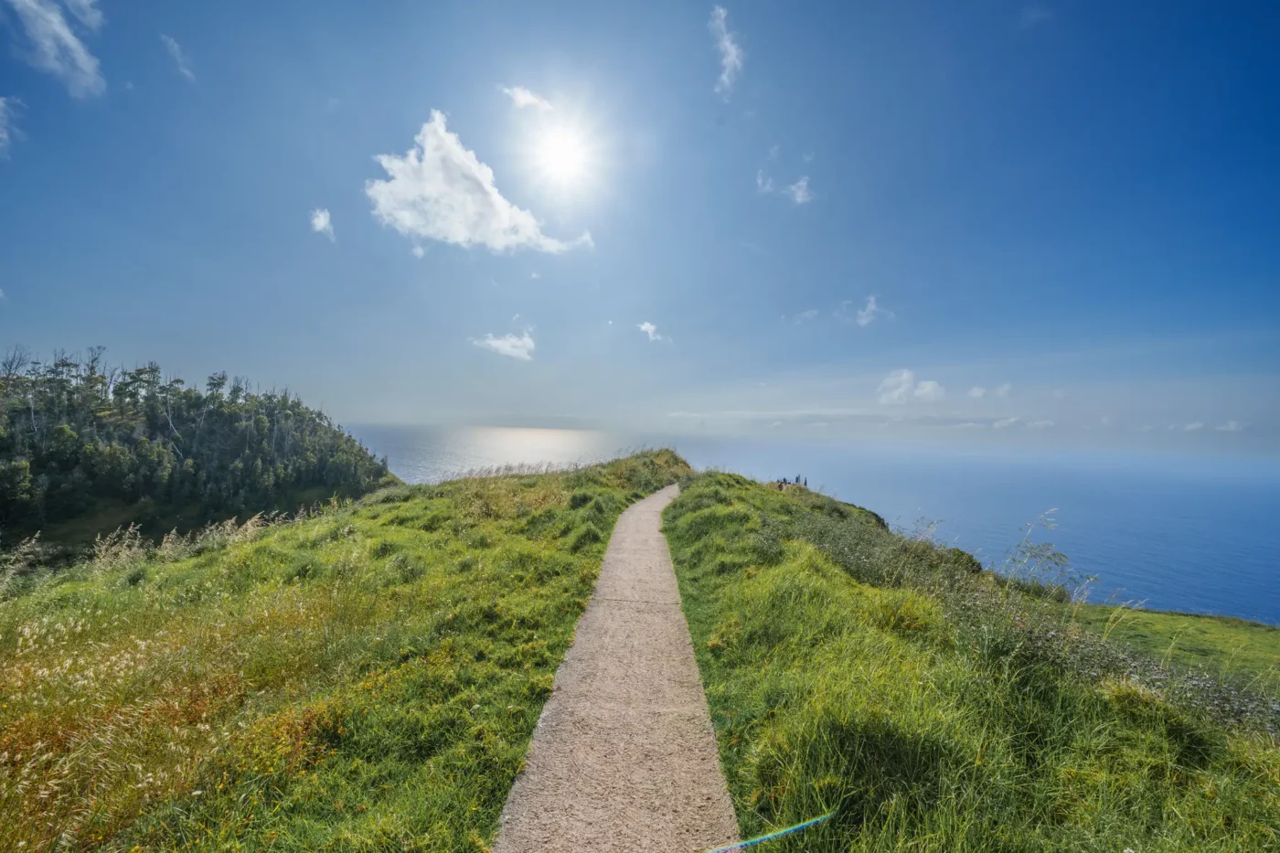 To dowód na to, że czasem warto dać miejscom drugą szansę. Podobno jeszcze niedawno było tu dość przeciętnie, ale ktoś mądry w 2022 roku postanowił przeprowadzić tu lifting. I to jaki! Nowoczesna, drewniana platforma widokowa, wygodna ławka strategicznie ustawiona w kierunku „na ocean” i ogólne poczucie zadbania. To nie jest jeden z tych punktów widokowych, gdzie zatrzymujesz się na trzy minuty, robisz zdjęcie i uciekasz. Tu chce się zostać.