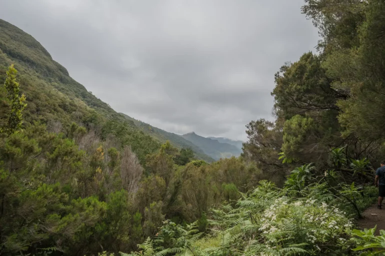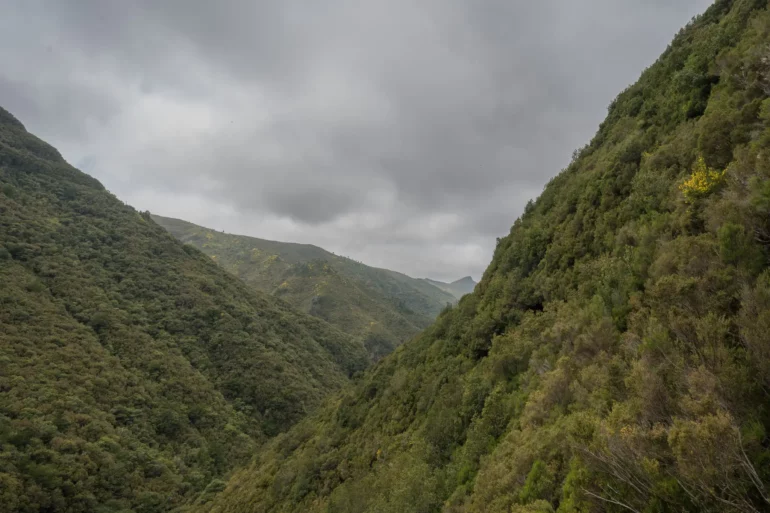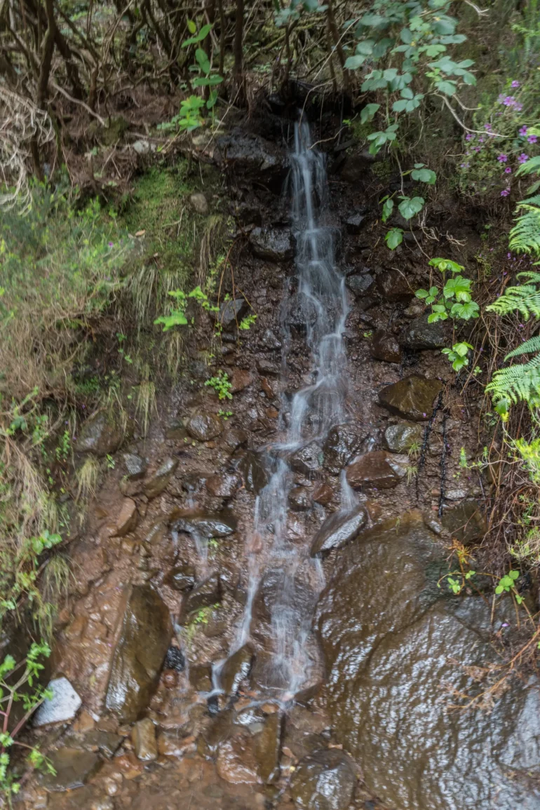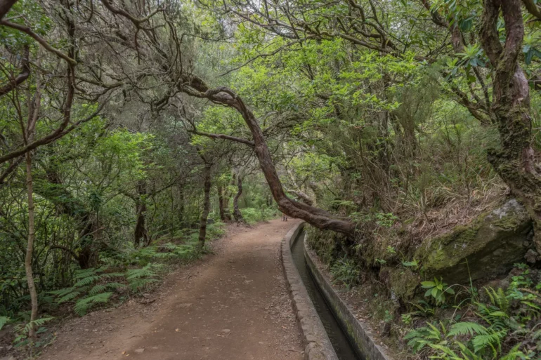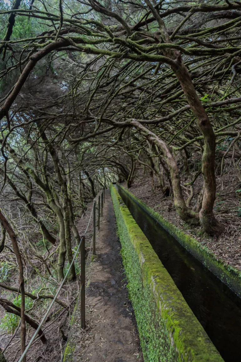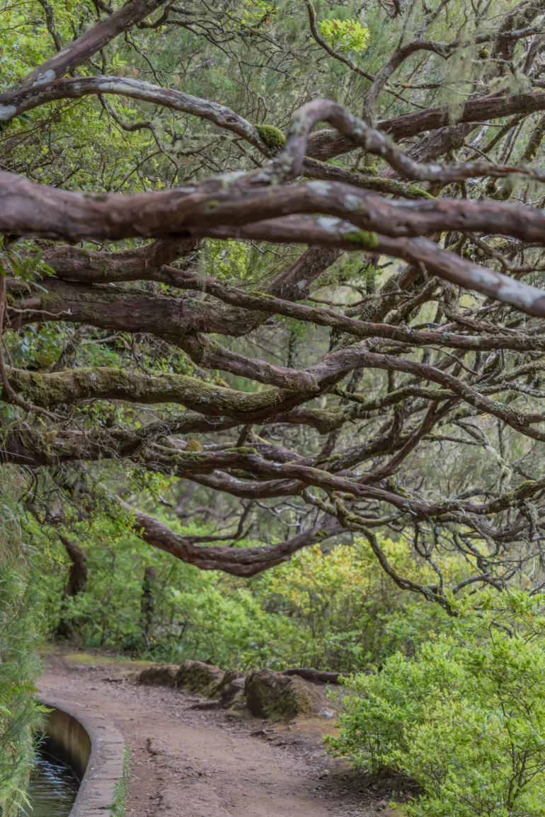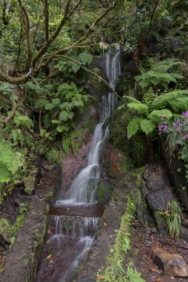 Im głębiej w dolinę, tym bardziej intensywna staje się symfonia dźwięków. Do cichego szemrania wody w kanale dołącza coraz głośniejszy szum spadającej wody – daleka zapowiedź tego, co czeka na końcu szlaku. Ptaki, takie jak endemiczny zięba maderska, przemykają między gałęziami, a ich śpiew odbija się echem w leśnej ciszy.