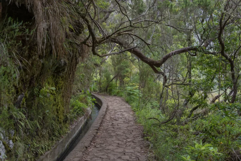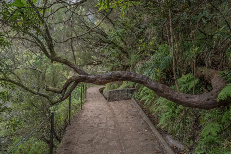 Trasa, choć liczy blisko dziesięć kilometrów, nie jest wyczerpująca. Jej profil jest łagodny, podyktowany subtelnym, precyzyjnie obliczonym spadkiem samej lewady. To sprawia, że wędrówka staje się przyjemnością dostępną dla każdego, kto pragnie doświadczyć esencji maderyjskiej przyrody bez konieczności ekstremalnego wysiłku. Szlak prowadzi przez wąskie przesmyki, czasem wykute w litej skale, gdzie trzeba pochylić głowę, by po chwili znów wyjść na otwartą przestrzeň z widokiem na przeciwległe zbocze doliny, porośnięte tym samym, niekończącym się lasem.