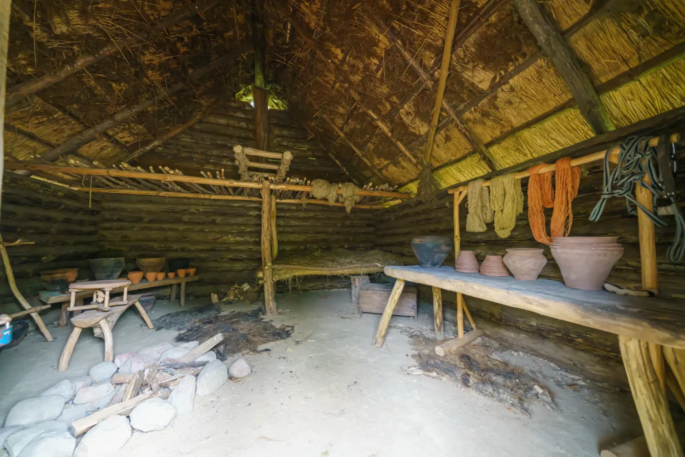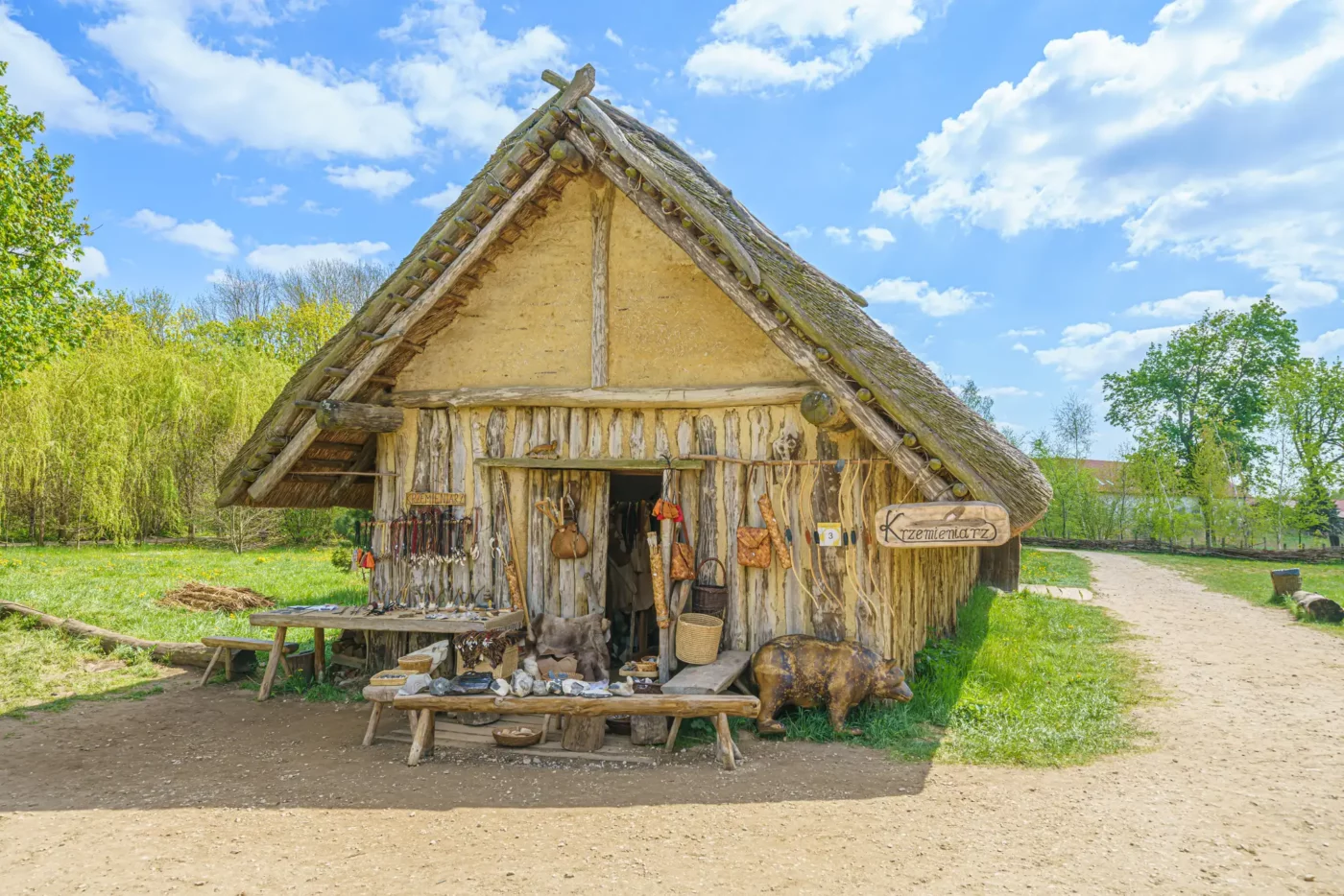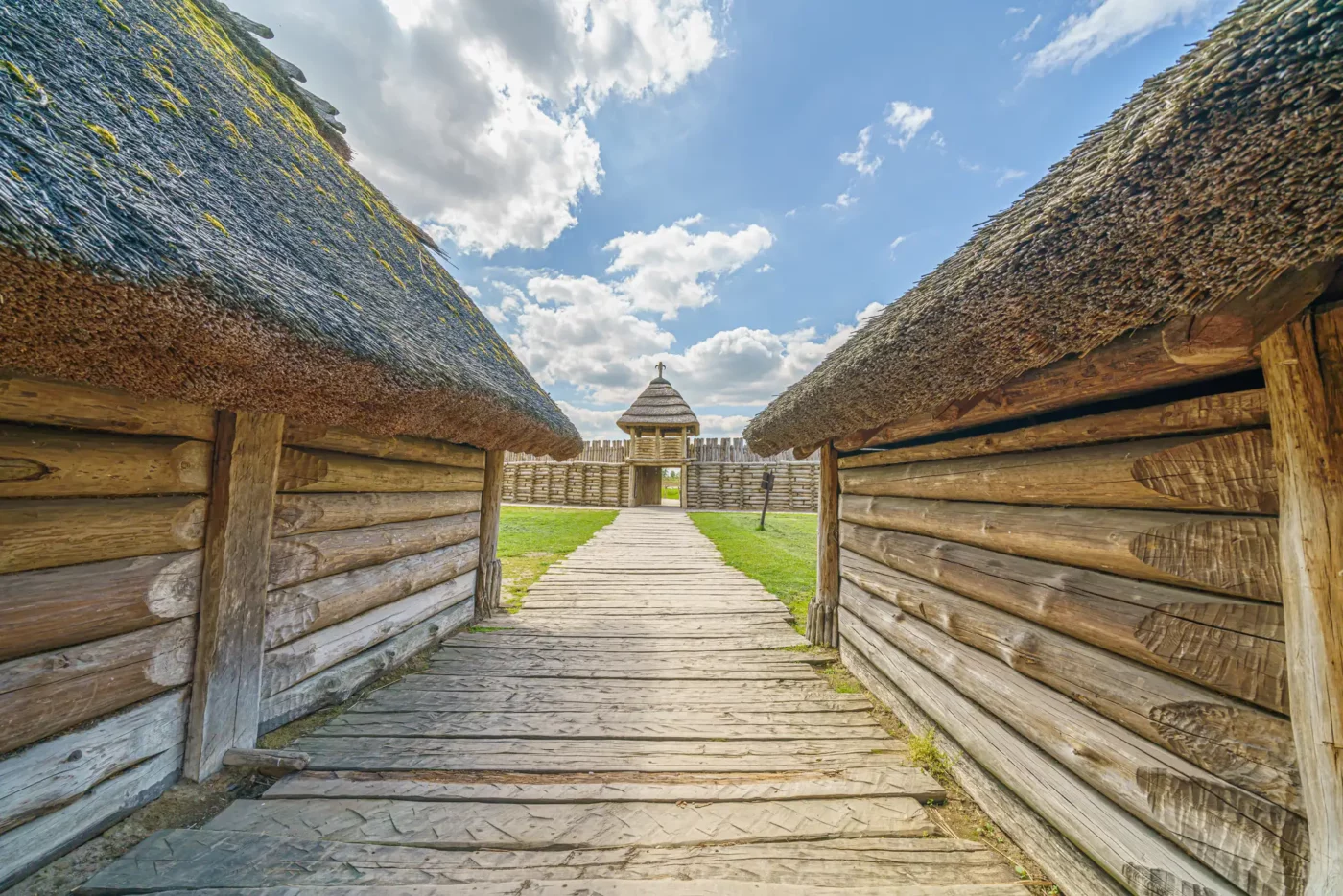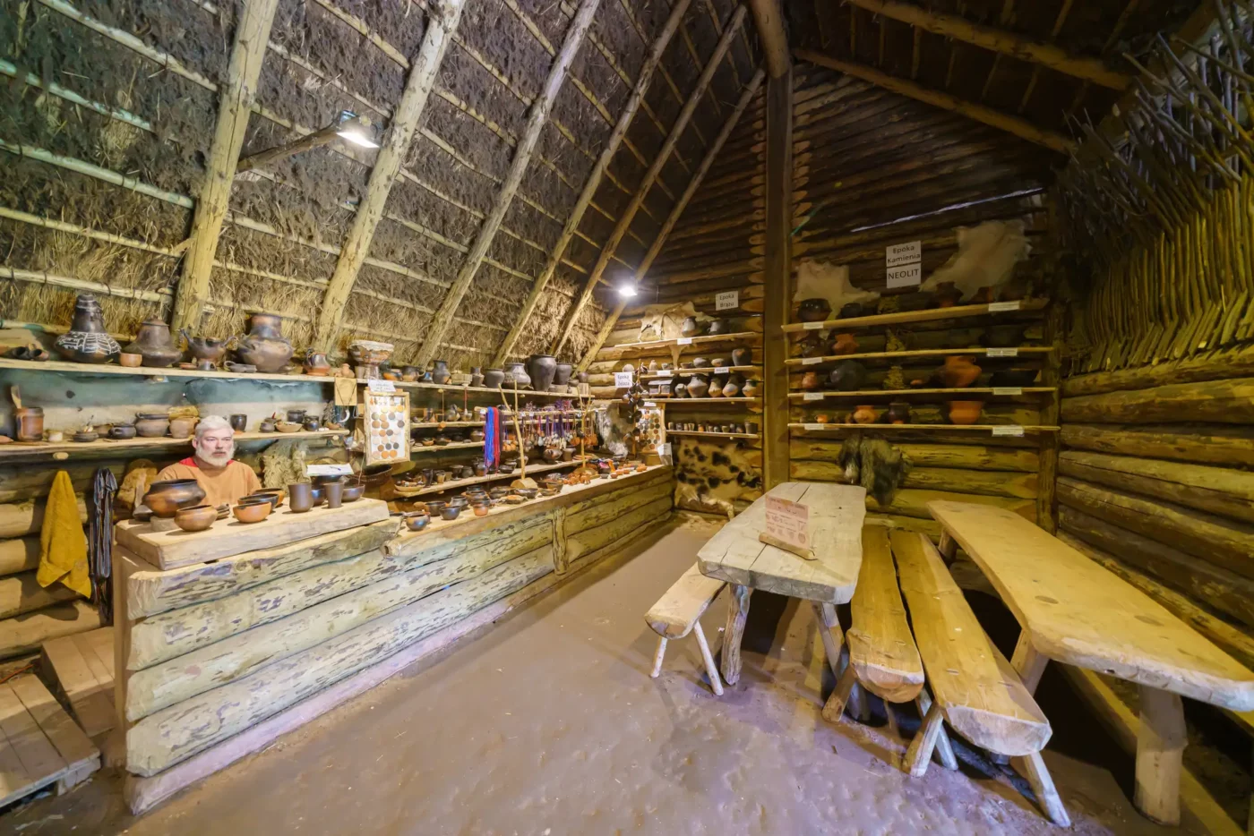 Sercem Muzeum jest imponująca rekonstrukcja osady obronnej ludności kultury łużyckiej, datowanej na VIII wiek p.n.e. Przechodząc przez monumentalną bramę i stąpając po drewnianym moście, wkraczasz do świata otoczonego potężnym wałem obronnym. Wewnątrz, w równych rzędach stoją chaty z bali, odtworzone z niezwykłą dbałością o historyczne detale. Można do nich wejść, by zobaczyć proste, lecz funkcjonalne wnętrza, wyobrazić sobie codzienne życie mieszkańców – ich pracę, posiłki i relacje społeczne. To unikalna okazja, by zrozumieć, jak zorganizowana i zaawansowana była społeczność, która stworzyła to miejsce.