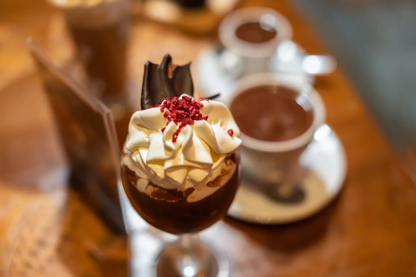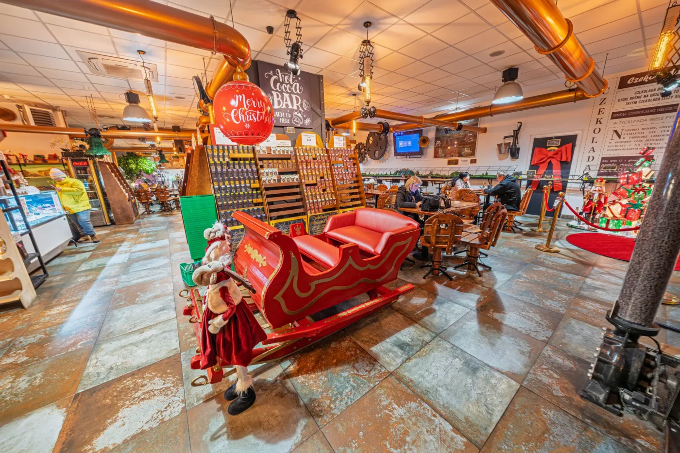 Oferta na miejscu to wyzwanie dla zmysłów. Gorąca czekolada serwowana w Korczynie nie ma nic wspólnego z rzadkimi napojami z automatów. Jest gęsta, esencjonalna i bezkompromisowa w smaku. My zdecydowaliśmy się na warianty przełamujące słodycz – wersje z solą morską czy ostrym chilli doskonale otwierają kubki smakowe. Warto też zajrzeć do sali kinowej, gdzie w przystępny sposób przedstawiona jest droga kakao od plantacji aż po gotową tabliczkę.