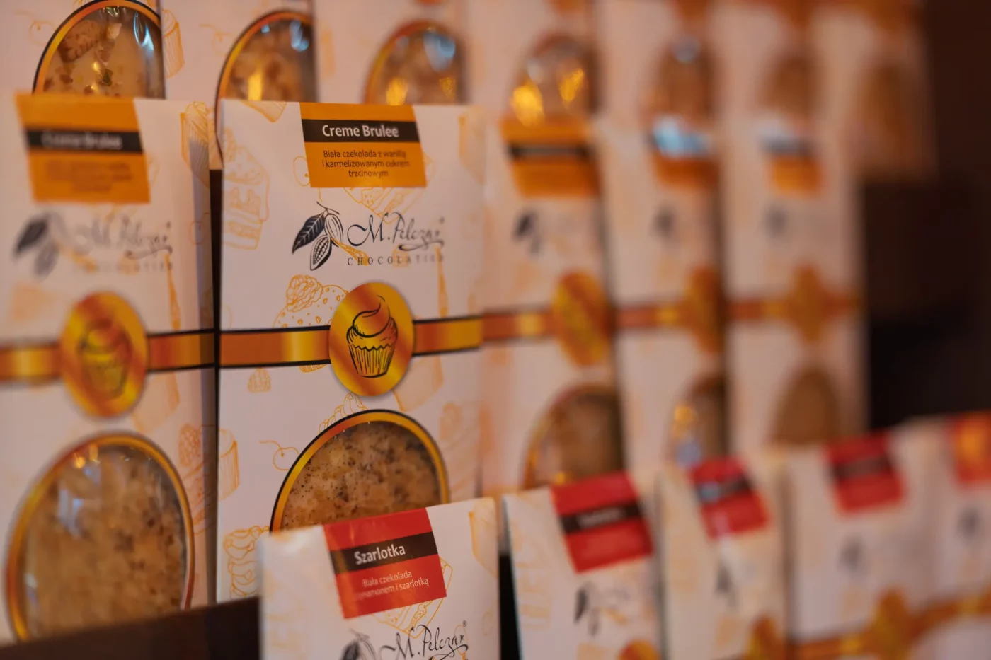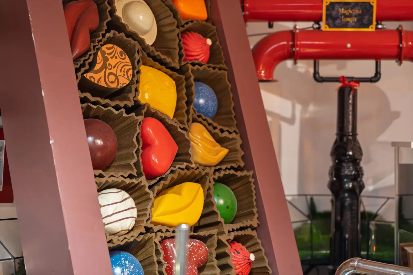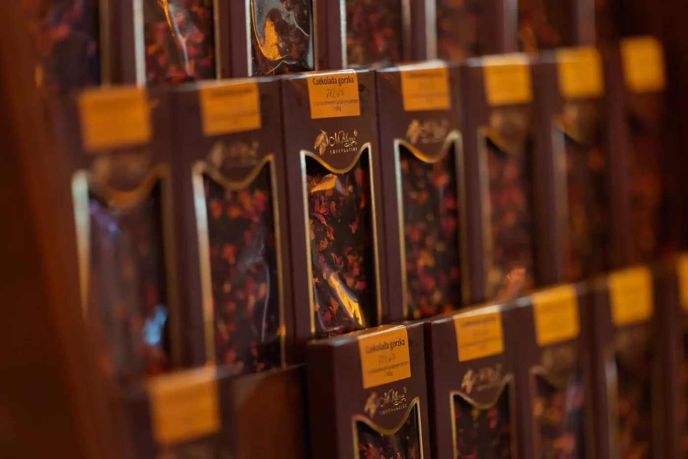 Wizyta w sklepie firmowym to osobny rozdział tej podróży. Pelczar udowadnia, że czekolada to materiał rzeźbiarski. Obok klasycznych tabliczek z liofilizowanymi owocami czy innowacyjnej, naturalnie różowej czekolady rubinowej, znajdziecie tu małe dzieła sztuki inżynieryjnej. Zardzewiałe klucze francuskie, śruby, modele samochodów czy eleganckie szpilki – wszystko wykonane z czekolady z taką precyzją, że łatwo pomylić je z oryginałem.