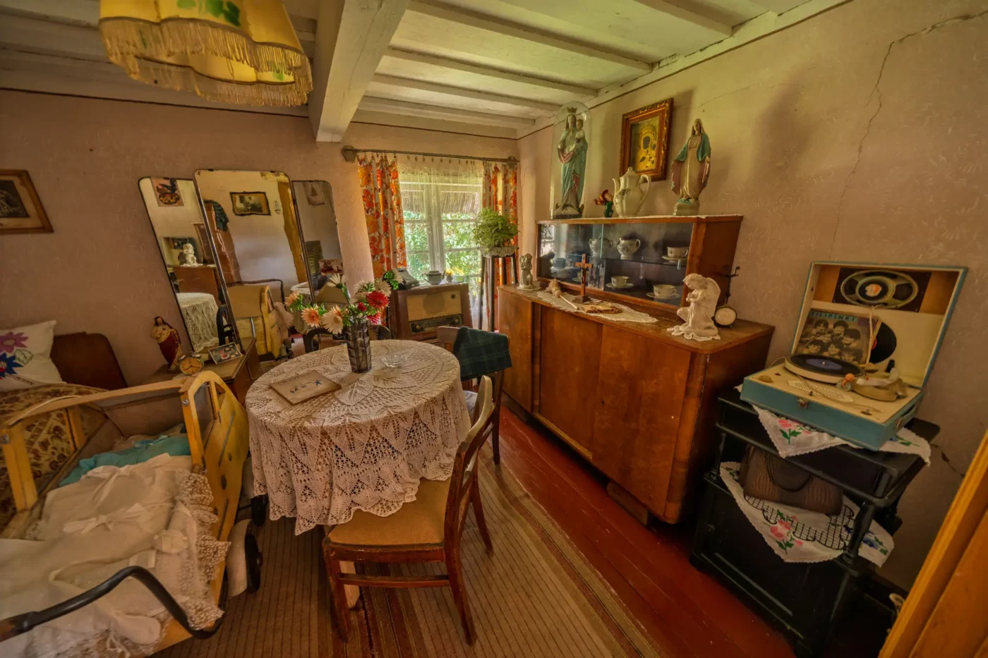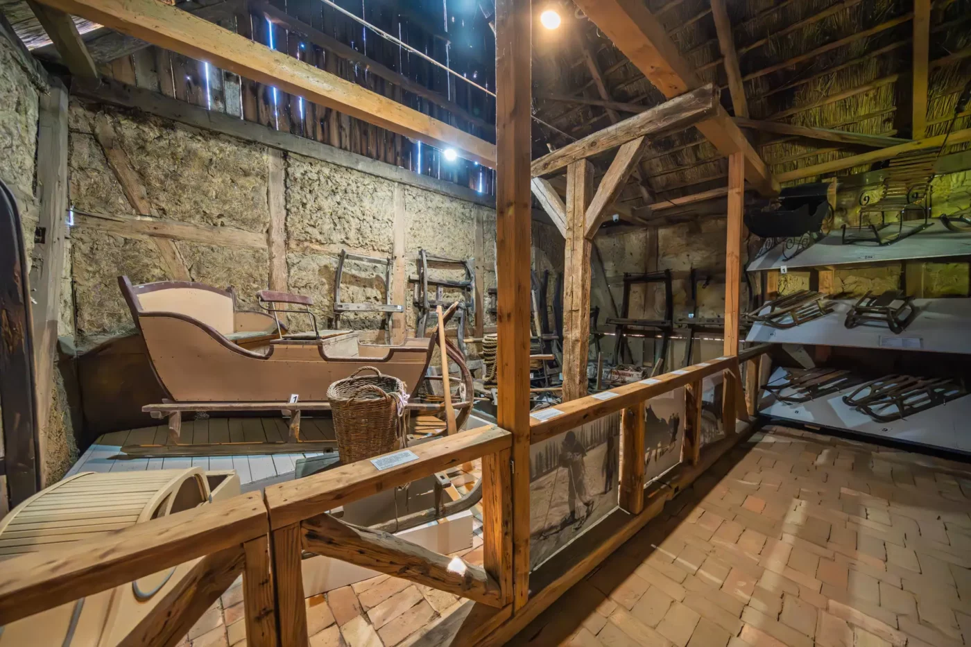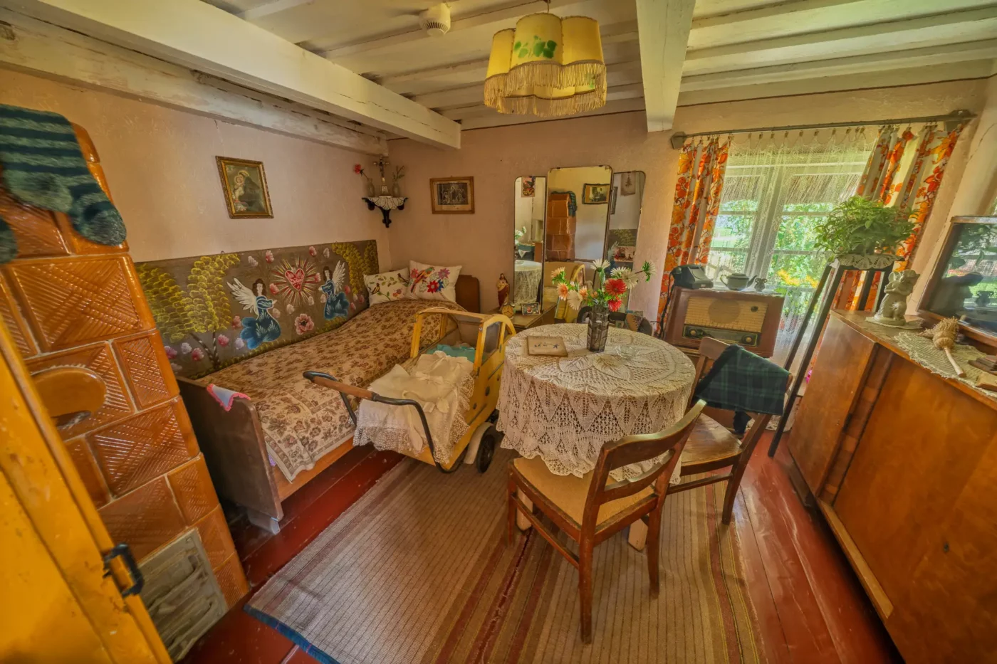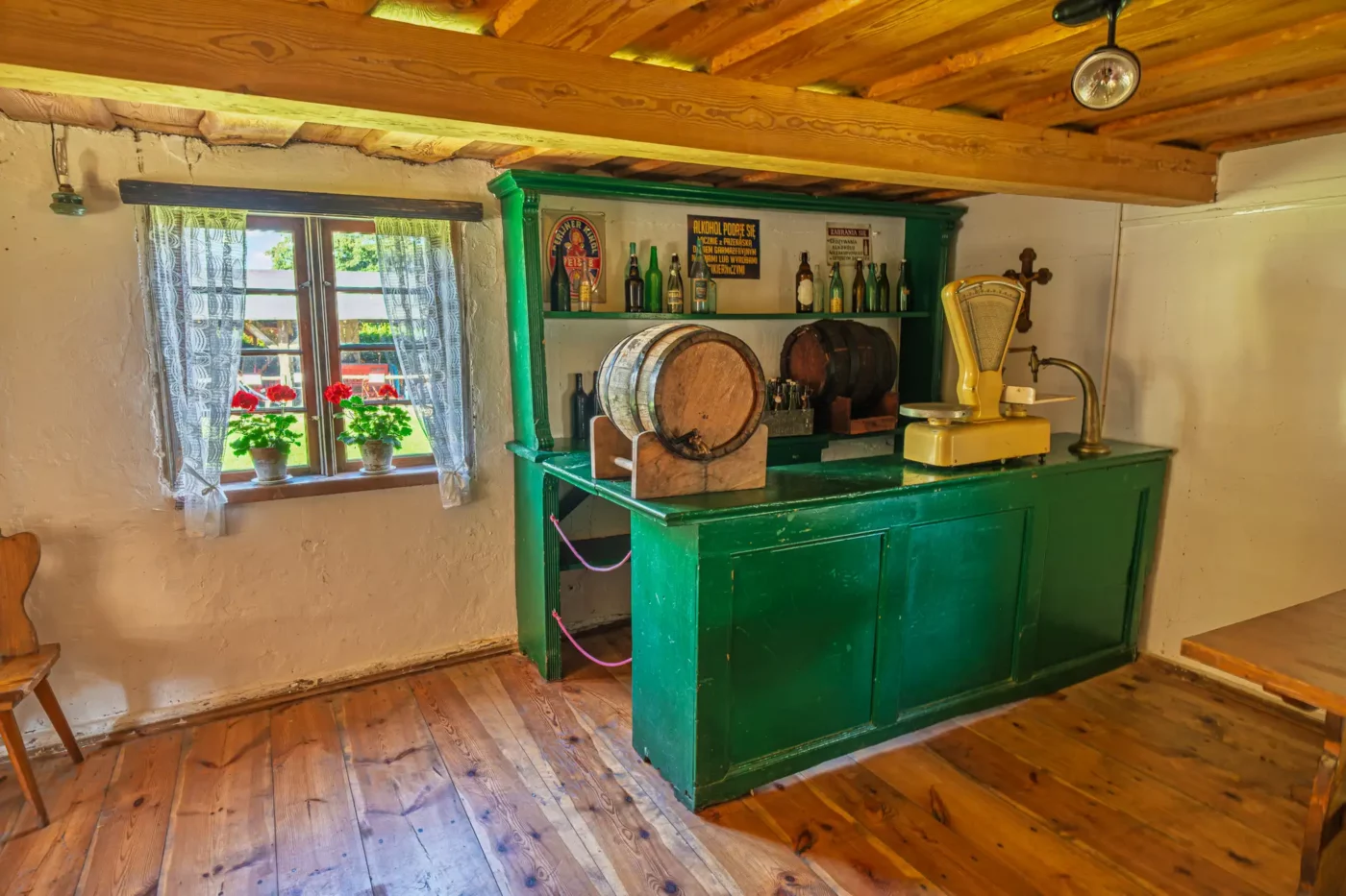 Jednak życie nad jeziorem miało dwa oblicza. Wystarczy przejść kilka kroków, by odkryć drugą część tej opowieści – świat kaszubskich rybaków. Skromniejsza chata, sieciarnia wypełniona narzędziami do naprawy sieci i sprzęt do połowu ryb to milczący świadkowie codziennej, ciężkiej walki z wodnym żywiołem. Każdy detal, od starannie zwiniętych lin po drewniane łodzie, opowiada o determinacji i głębokim szacunku do natury, która była jednocześnie żywicielką i potężnym przeciwnikiem.