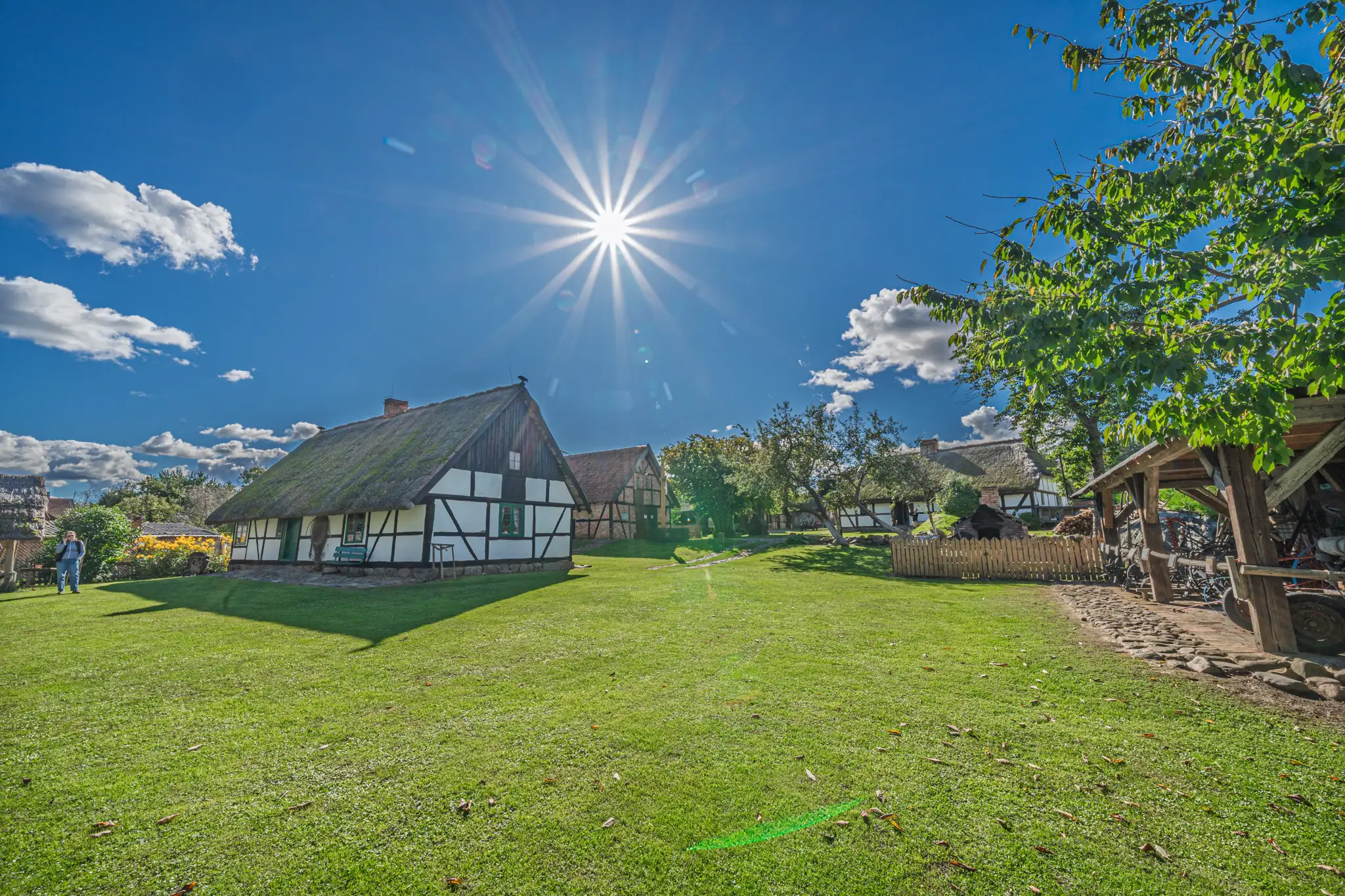 Przekraczając próg tego skansenu, ma się wrażenie, że jego mieszkańcy wyszli tylko na chwilę. W sercu zagrody stoi checz – solidny, tradycyjny dom zamożnego kaszubskiego gospodarza. To tutaj biło serce całego gospodarstwa. Wnętrze, z potężnym piecem chlebowym i prostymi, lecz solidnymi meblami, opowiada historię rodziny, pracy i wspólnoty. Wokół domu rozlokowano pozostałe zabudowania: oborę, stodołę pachnącą sianem, wozownię i kamienną piwniczkę. Pomiędzy nimi rozkwita ogród, pełen zapomnianych dziś ziół, kolorowych kwiatów i warzyw, które stanowiły podstawę codziennej diety.