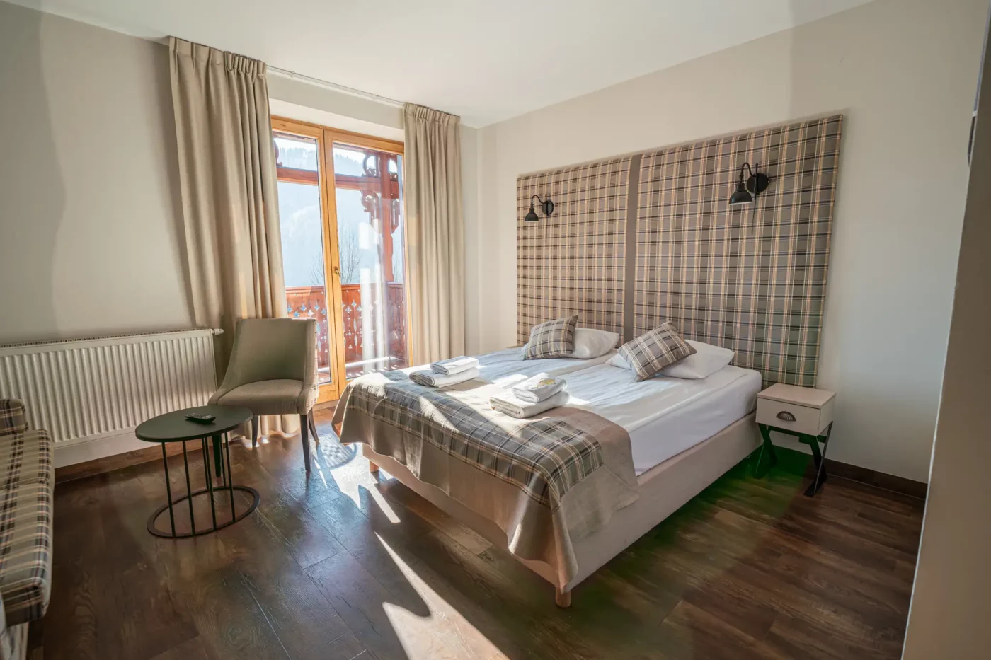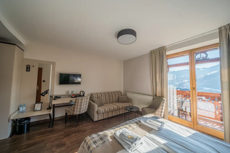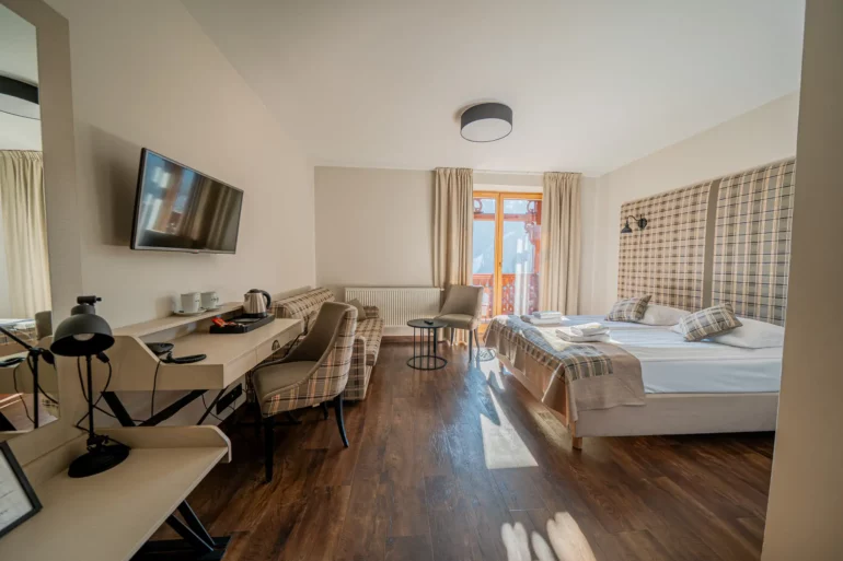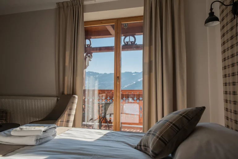 Odnowione pokoje zachwycają eleganckim wystrojem, wygodnymi łóżkami i widokami na beskidzkie szczyty. Każdy detal został zaprojektowany z myślą o wygodzie i relaksie gości.