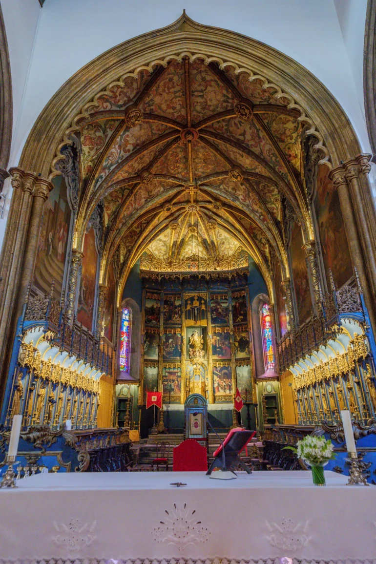 Warto również zwrócić uwagę na inne cenne elementy wnętrza, takie jak imponujący ołtarz główny, flamandzkie malowidła z XVI wieku oraz pięknie zdobione stalle w prezbiterium, przedstawiające postacie świętych i apostołów.