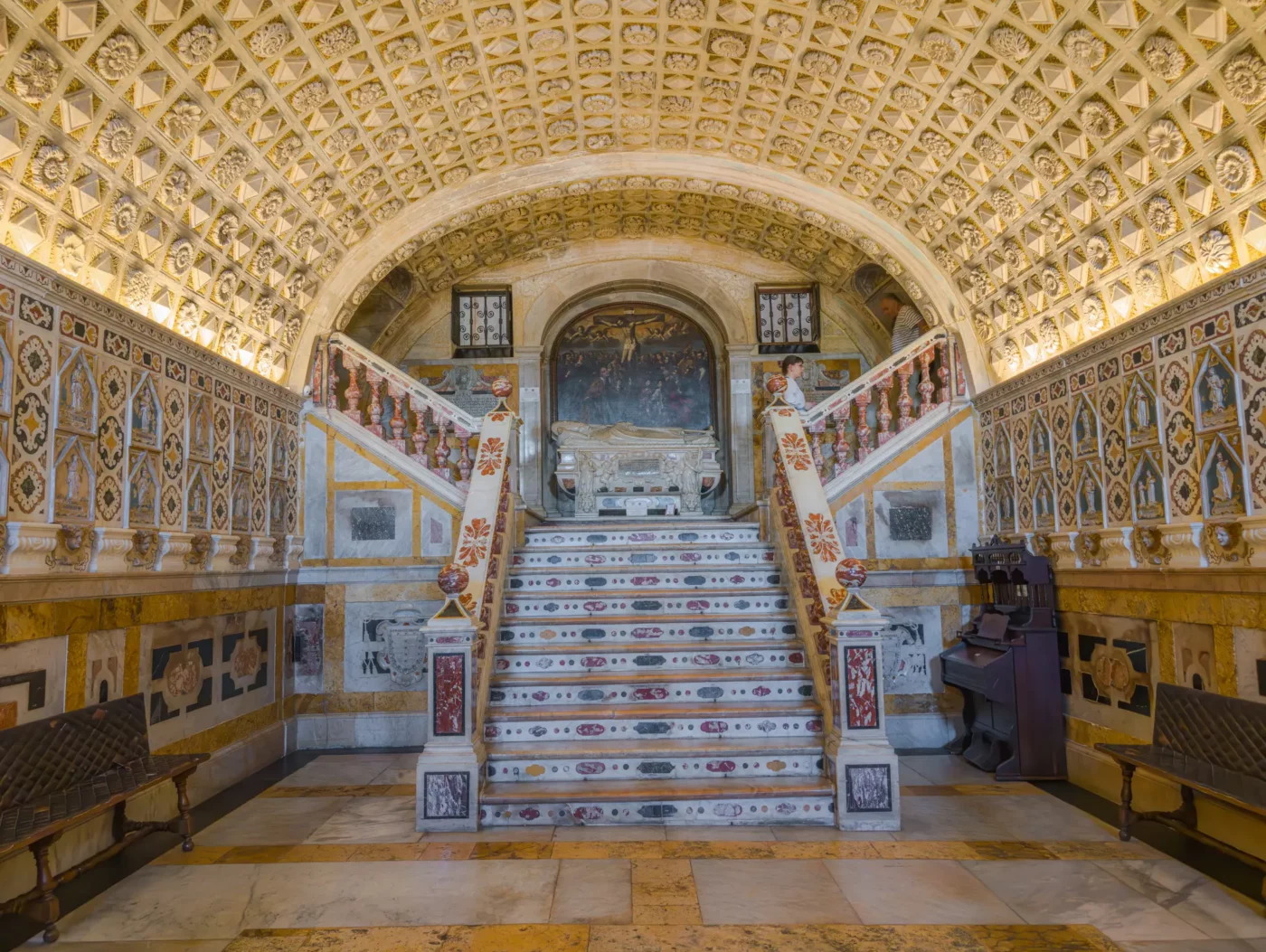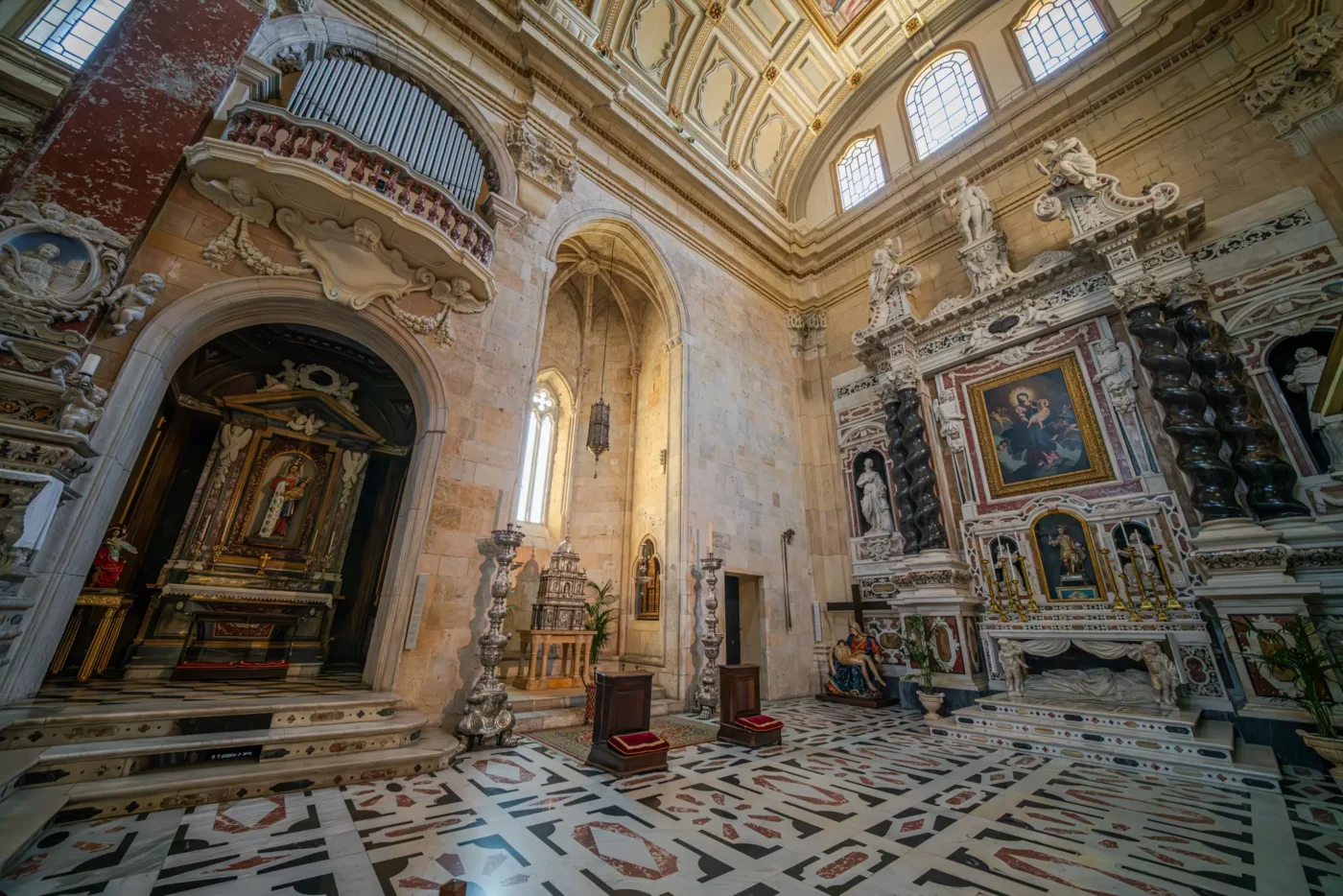 Jednym z największych atutów katedry jest możliwość wejścia na wieżę katedralną. Z jej szczytu rozciąga się panorama Cagliari – widać dachy zabytkowej dzielnicy Castello, port oraz błękit Morza Śródziemnego. To idealne miejsce, aby zakończyć zwiedzanie i zrobić niezapomniane zdjęcia.