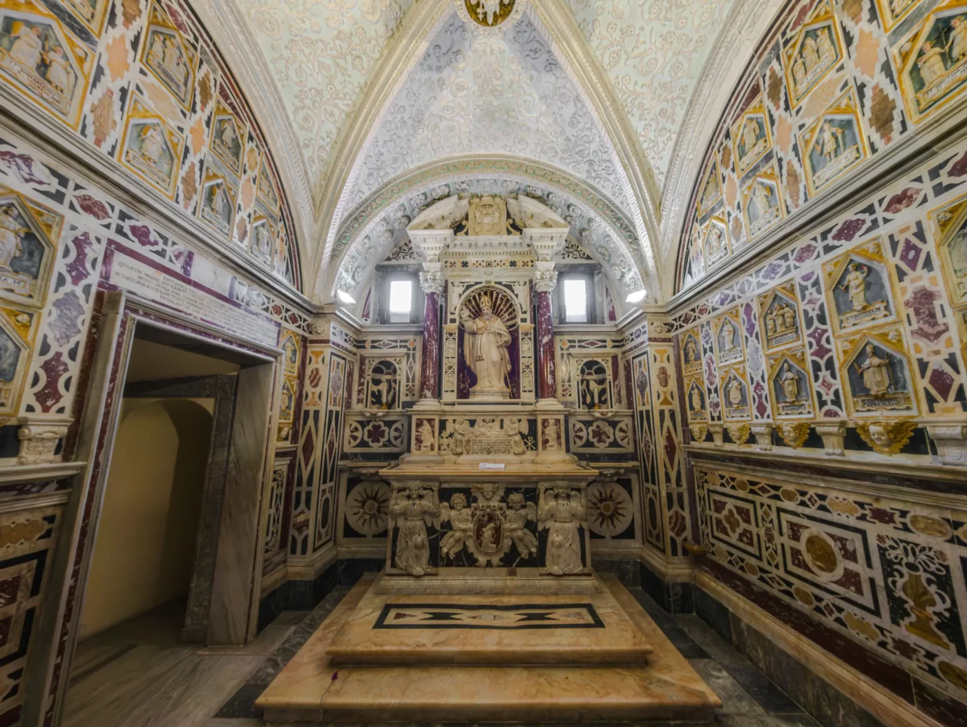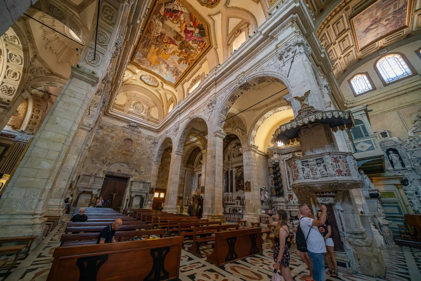 Ambony z XII wieku – wewnątrz znajdują się słynne marmurowe ambony, przeniesione z katedry w Pizie, które wspierają się na czterech kolumnach.
