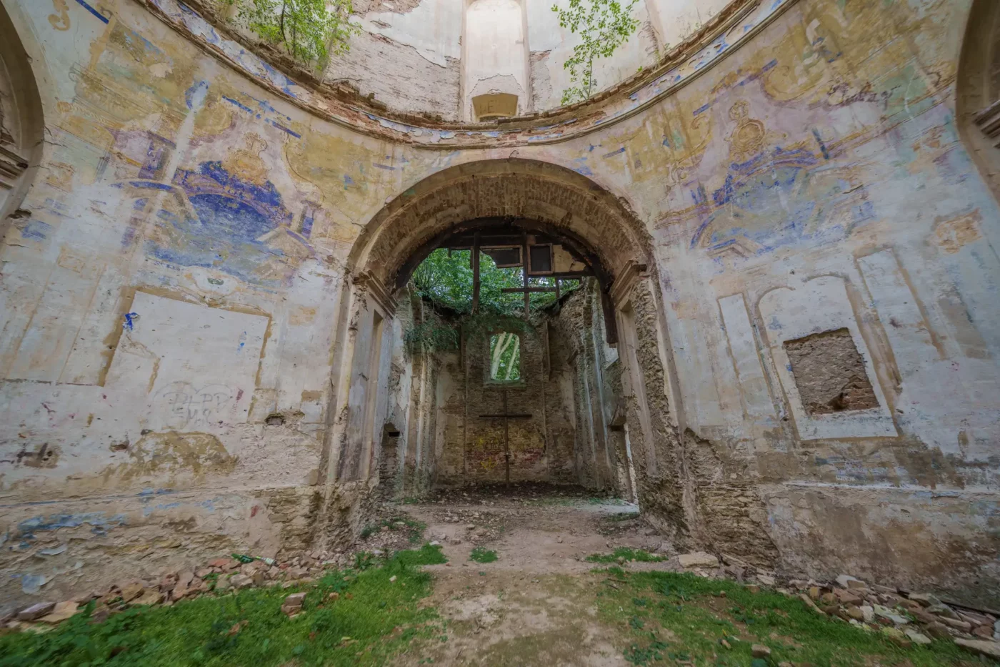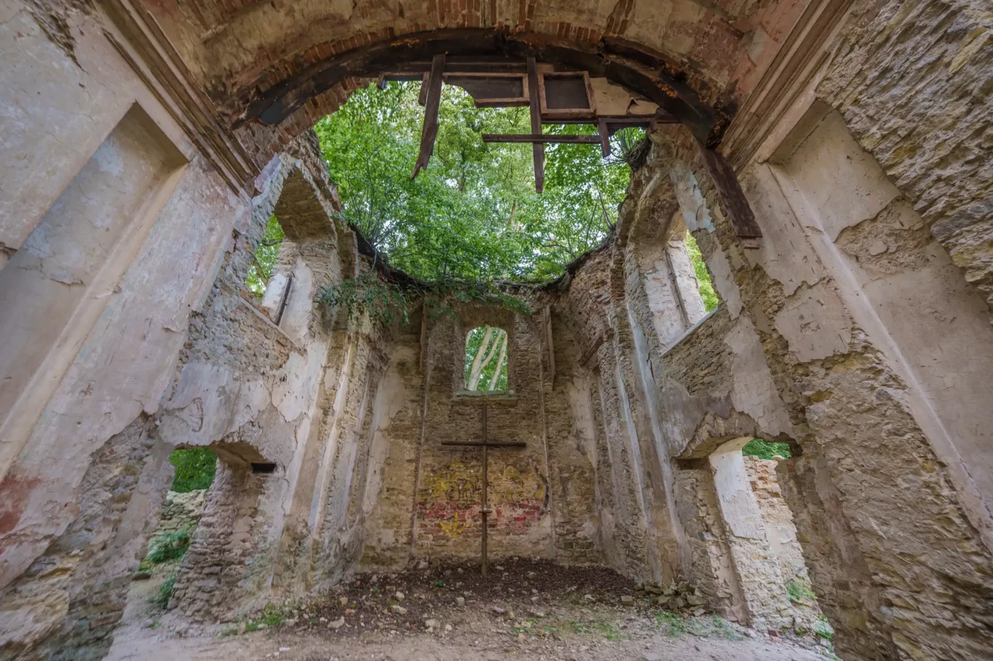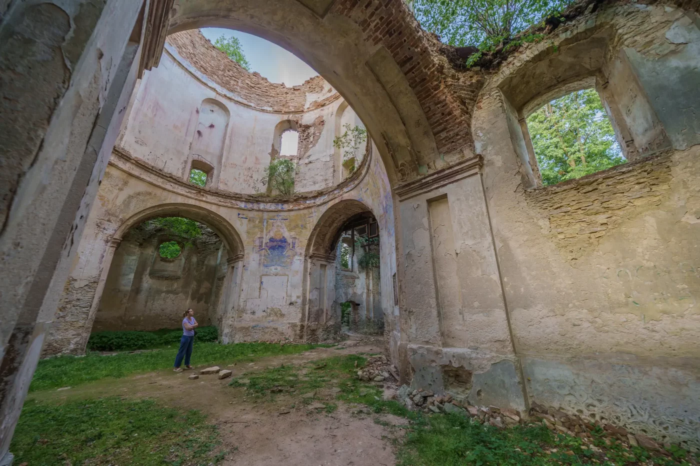 Zachęcamy, by podejść bliżej. By dotknąć chropowatej faktury murów i odnaleźć ledwo widoczne ślady dawnych polichromii. Gdzieś w załamaniach tynku wciąż tlą się resztki błękitu i ochry – ciche echo barwnego wystroju, który kiedyś wypełniał to wnętrze. Wyobraźcie sobie dźwięk śpiewu odbijający się od tych ścian i blask świec rzucający ciepłe światło na twarze świętych. Dziś pozostała tylko cisza, ale jest to cisza głośna, pełna niedopowiedzianych historii.