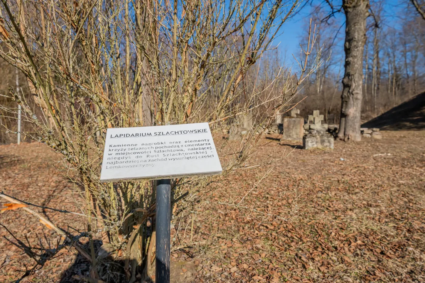 Dziedzictwo Rusinów Szlachtowskich Nagrobki zgromadzone w lapidarium pochodzą z cmentarza nieistniejącej już wsi Ruś Szlachtowska – ostatniej łemkowskiej osady w Pieninach, której mieszkańcy zostali wysiedleni w ramach akcji „Wisła” po II wojnie światowej. Pomniki, często skromne, wykonane z piaskowca lub kamienia polnego, noszą inskrypcje w języku łemkowskim i cyrylicy, a ich forma odzwierciedla lokalne tradycje rzeźbiarskie.