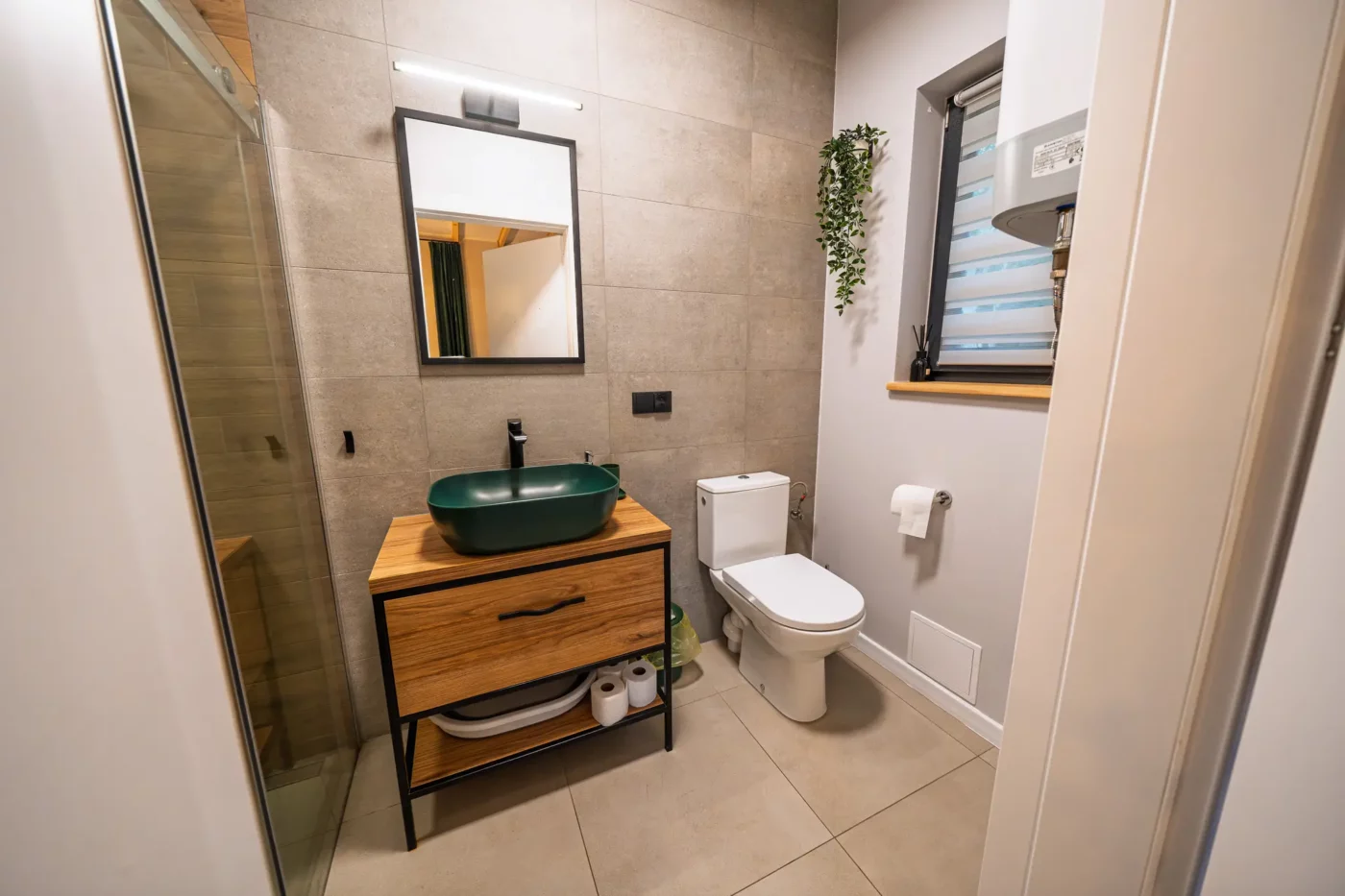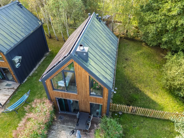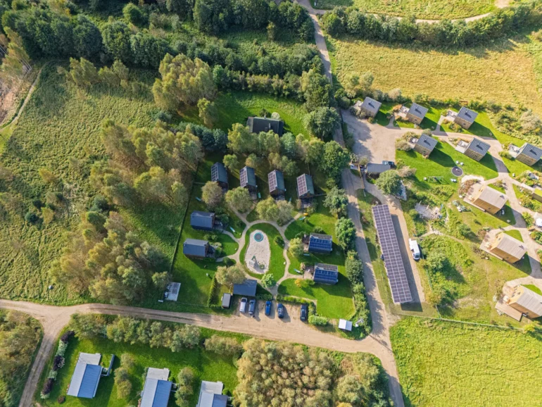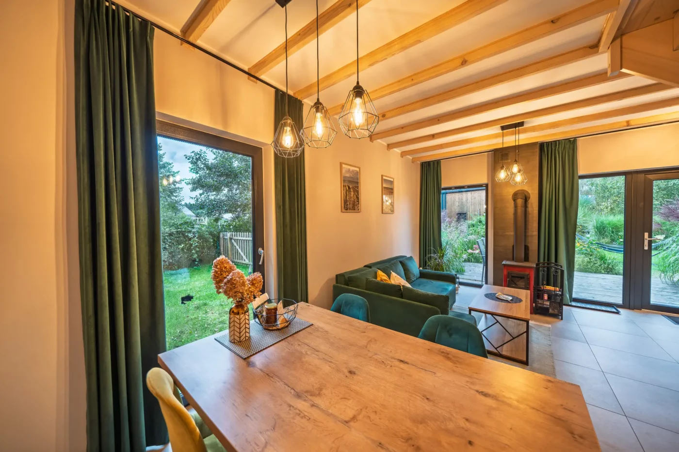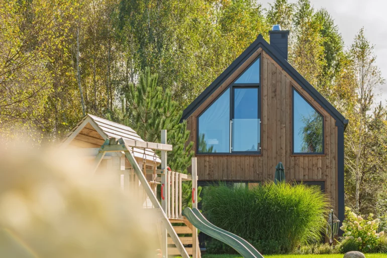 Każdy z domków komfortowo ugości do sześciu osób. To nie są ciasne kabiny, ale przemyślane przestrzenie, idealne, jeśli planujecie wyjazd w kameralnym gronie przyjaciół lub chcecie zabrać rodzinę w miejsce, gdzie dzieciaki będą miały bezpośredni kontakt z przyrodą.