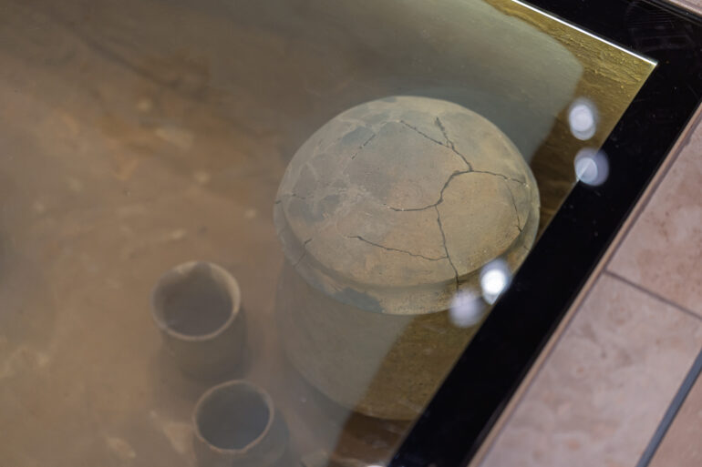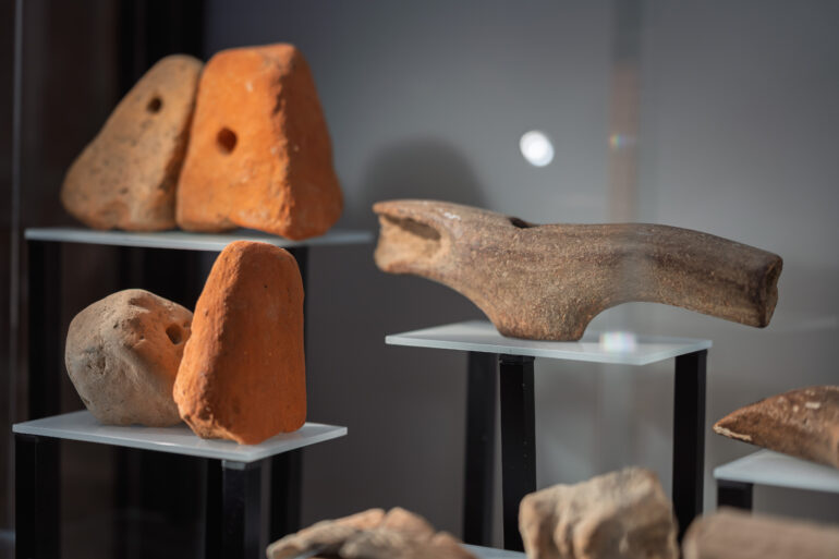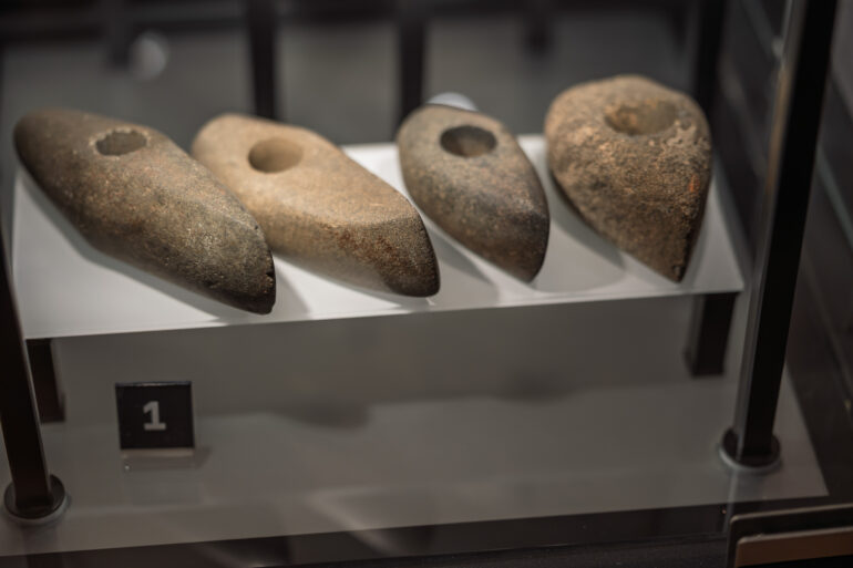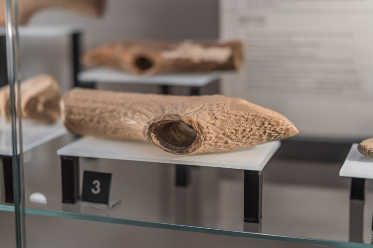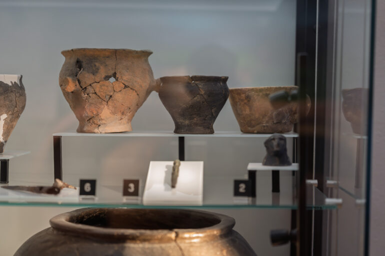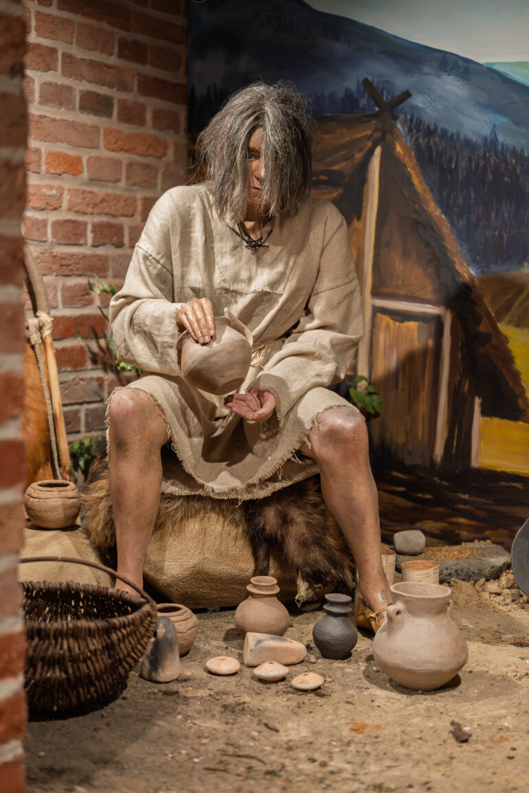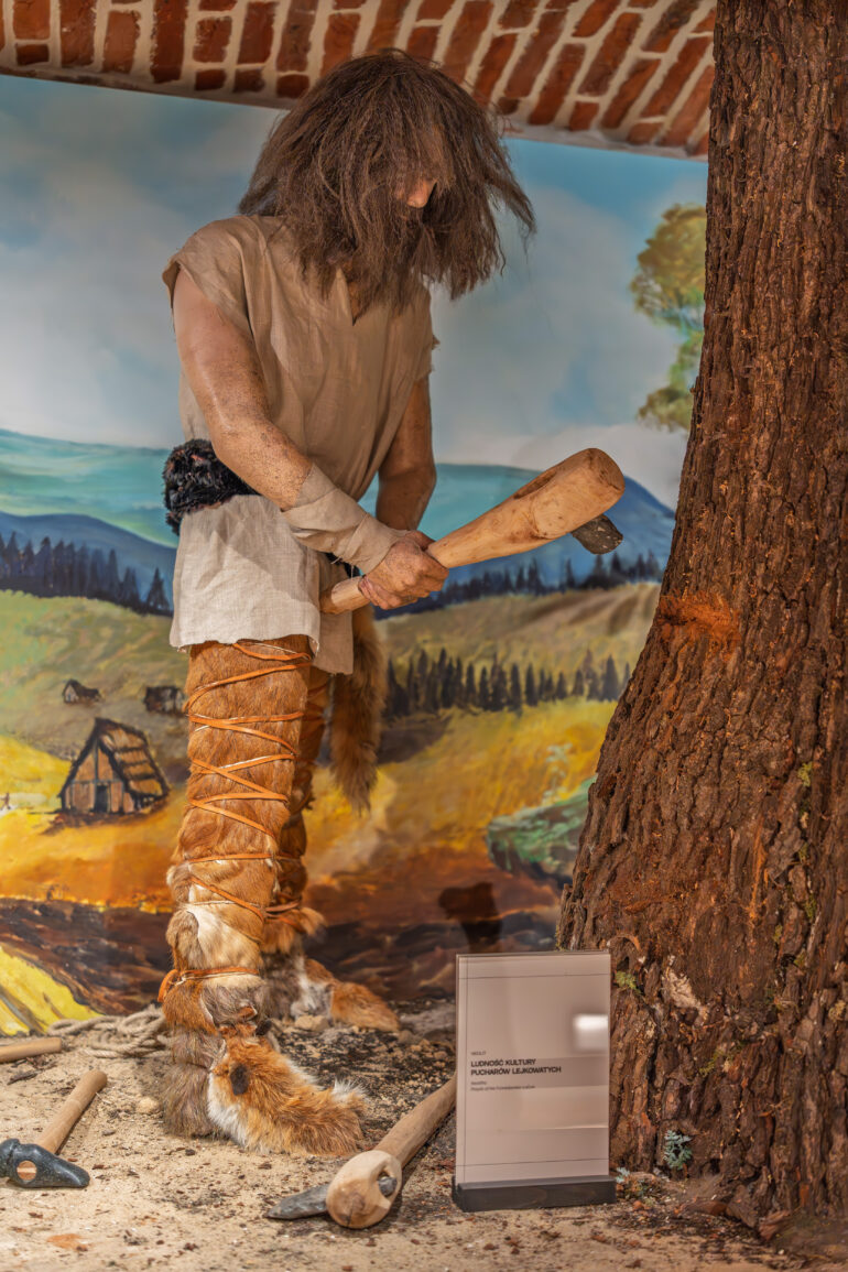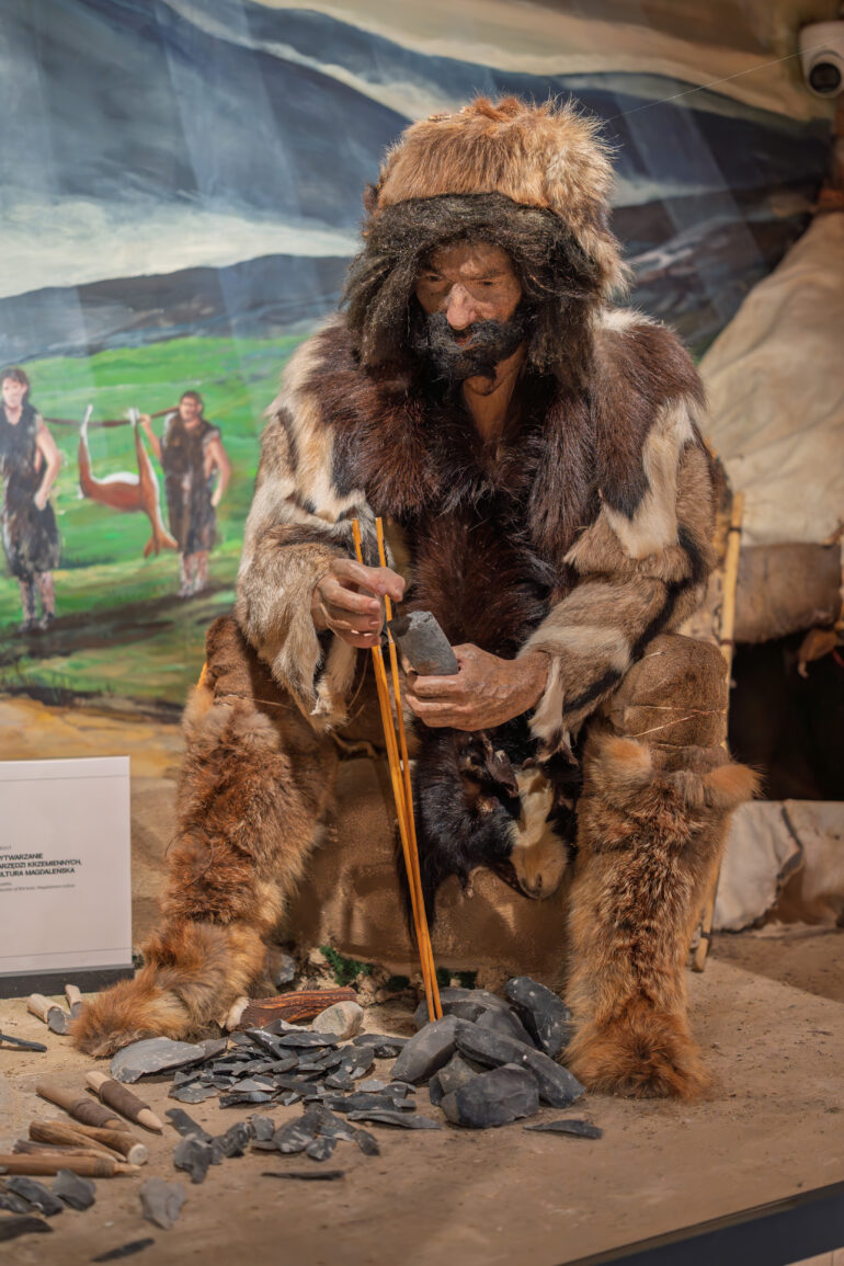 Nie jest to typowa, szkolna lekcja historii. To raczej archeologiczna narracja prowadzona w półmroku, gdzie każdy stopień w dół przybliża nas do czasów, gdy Krosno nie istniało nawet w sferze planów. Cofamy się tutaj aż do paleolitu, ponad dwadzieścia tysięcy lat wstecz. W pierwszej części ekspozycji uderza surowość życia dawnych mieszkańców tych ziem. Gabloty nie są jedynie zbiorem przedmiotów; są świadectwem walki o przetrwanie. Widzimy kamienne grociki używane przez łowców reniferów – precyzyjne, śmiertelne narzędzia, które pozwalały przeżyć w nieprzyjaznym klimacie.