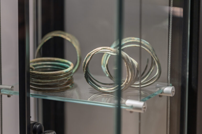 Przechodząc dalej, obserwujemy ewolucję technologiczną i społeczną. Epoka brązu i żelaza przynosi zmianę. Narzędzia stają się bardziej wyrafinowane, a obok przedmiotów codziennego użytku, takich jak gliniane naczynia, przęśliki czy żarna, pojawia się potrzeba piękna i prestiżu. Szczególną uwagę warto poświęcić skarbowi z Hłomczy. To nie są przypadkowe znaleziska, lecz misternie wykonane bransolety, kolczyki i pierścienie, które rzucają światło na estetykę i kunszt ówczesnych rzemieślników. Patrząc na te przedmioty, uświadamiamy sobie, że ludzie żyjący tu tysiące lat temu mieli podobne do nas pragnienie wyróżnienia się i otaczania pięknem.