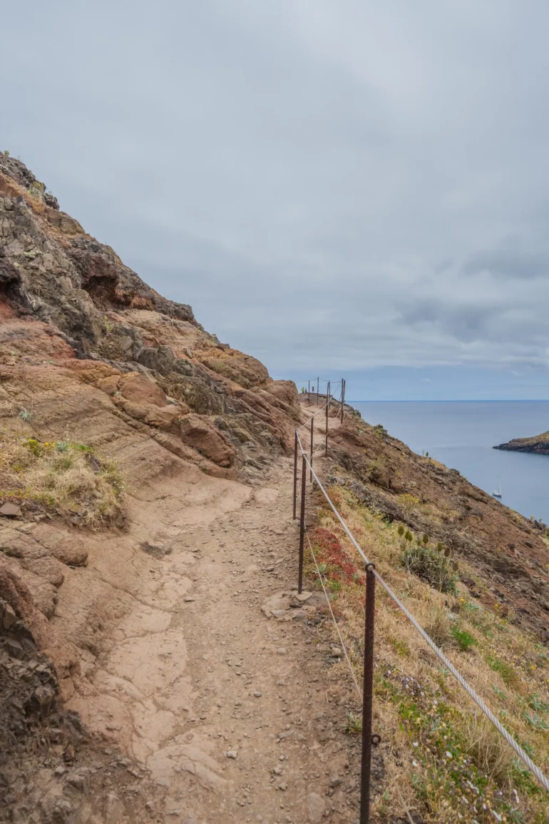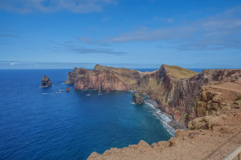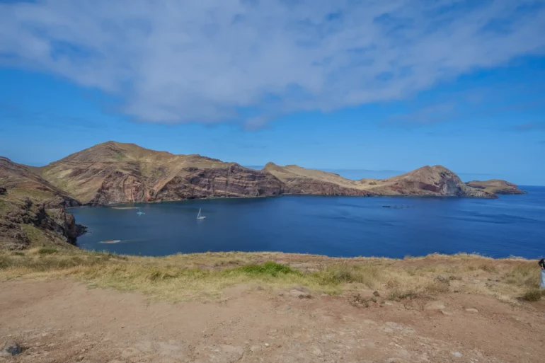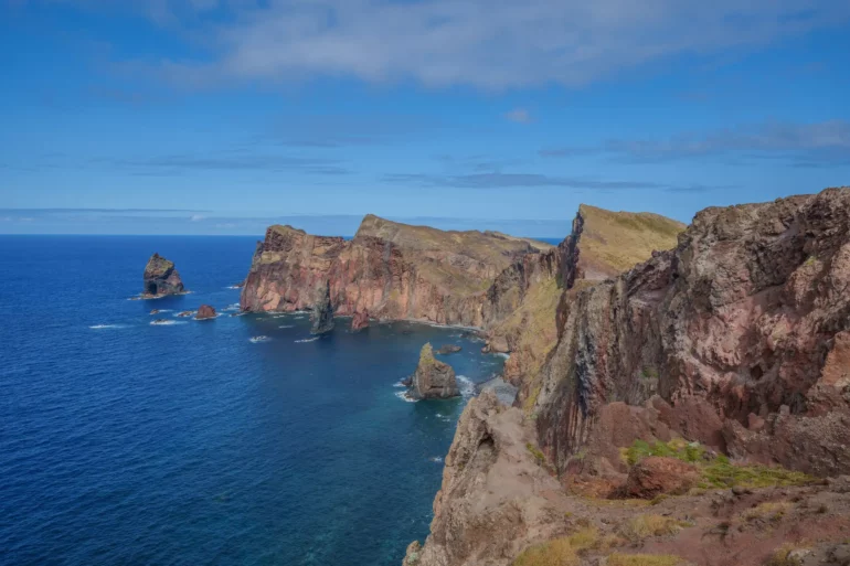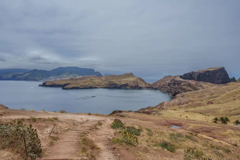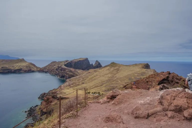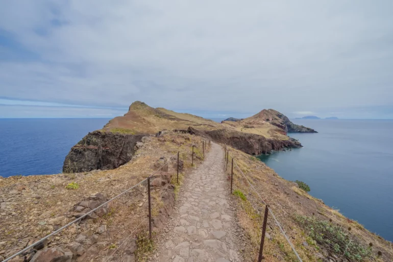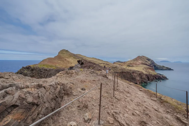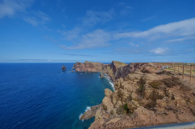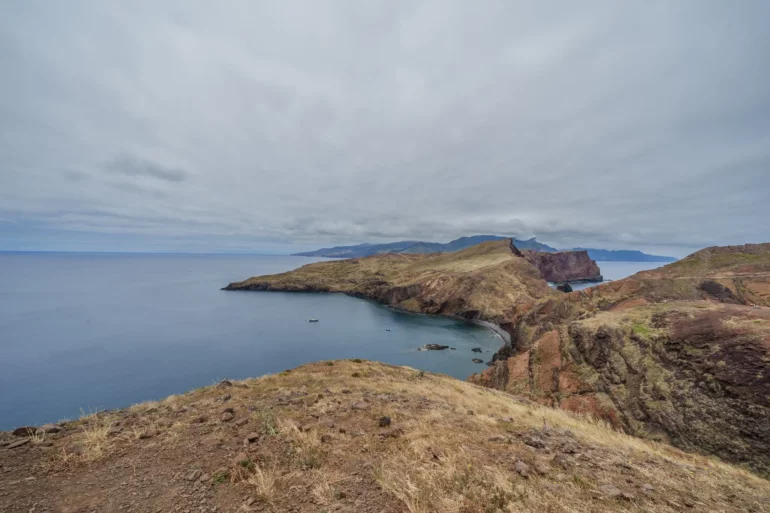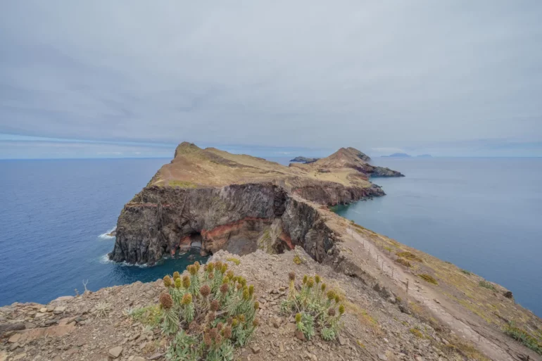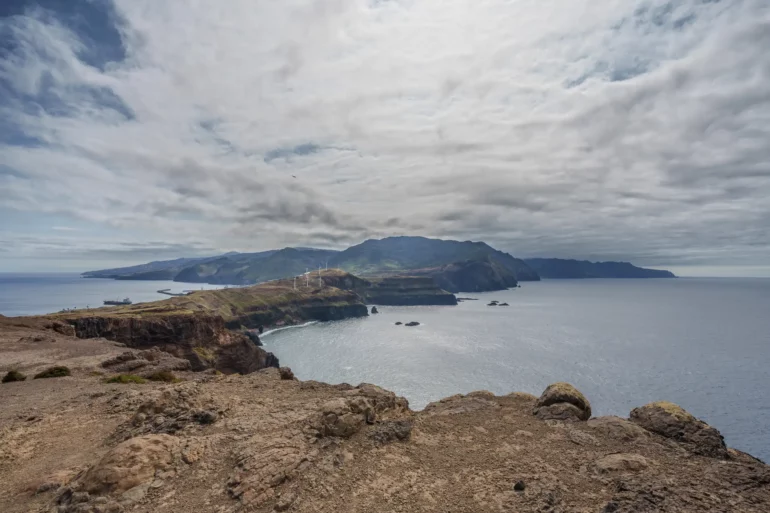 Szlak, wbrew pozorom, nie jest monotonną wędrówką przez pustkowie. Ścieżka wije się, wznosi i opada, co chwilę odsłaniając nowe, zapierające dech w piersiach panoramy. Z każdym zakrętem otwiera się widok na ukryte zatoczki, gdzie turkusowa woda obmywa czarne, kamieniste plaże, niedostępne z lądu. To dzika symfonia natury w jej najczystszej postaci. Patrząc w dal, przy dobrej widoczności, na horyzoncie można dostrzec zarys sąsiedniej wyspy Porto Santo oraz surowe sylwetki niezamieszkanych Ilhas Desertas. Stojąc tam, na wąskim grzbiecie półwyspu, z oceanem po obu stronach, człowiek czuje się mały wobec potęgi żywiołów.