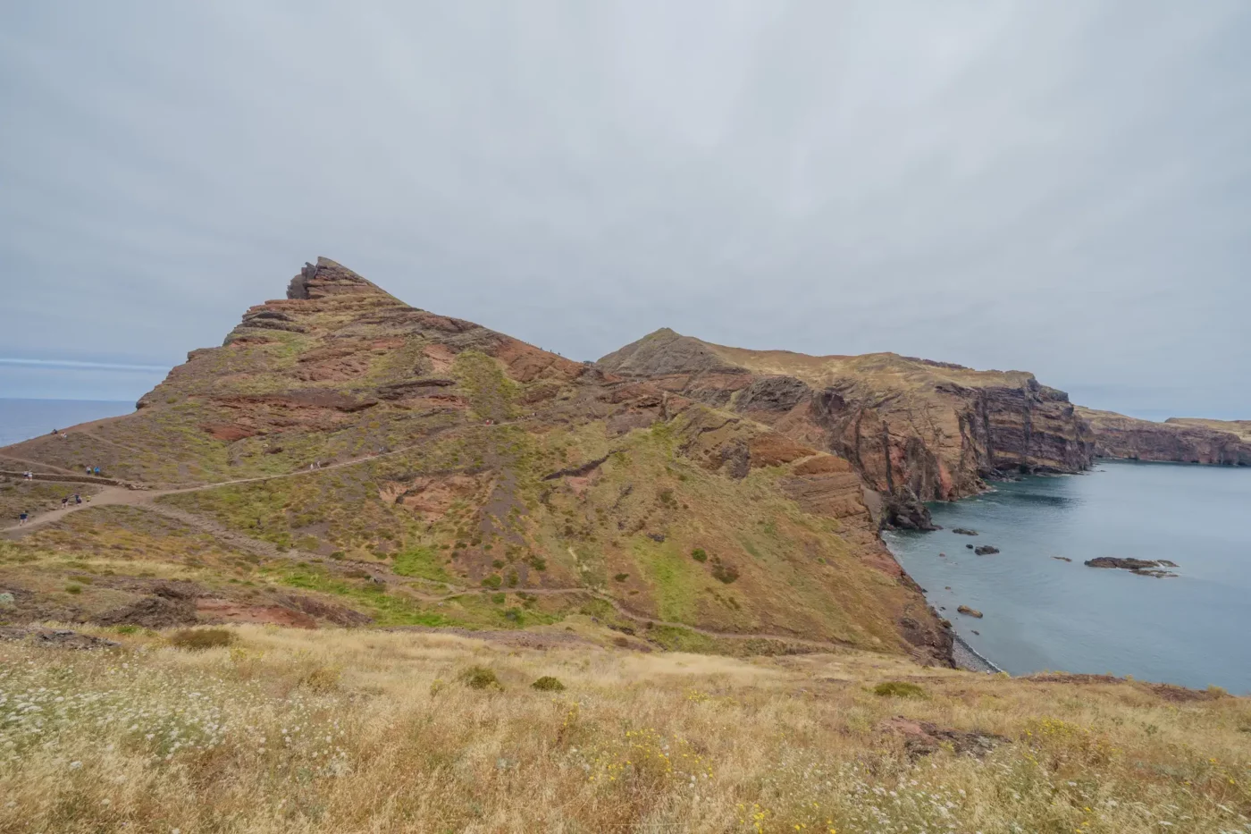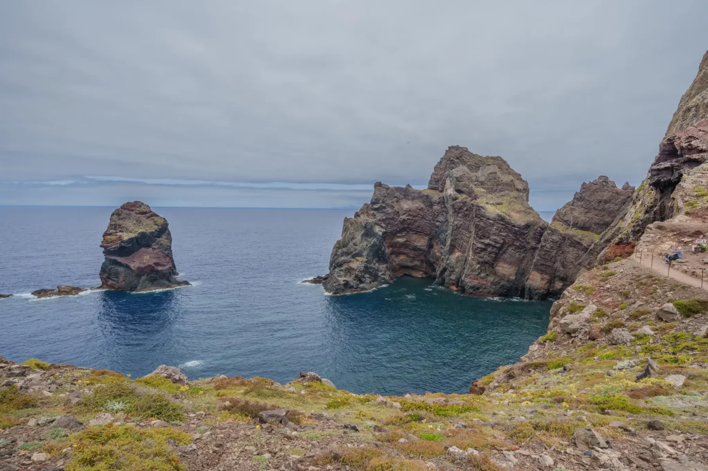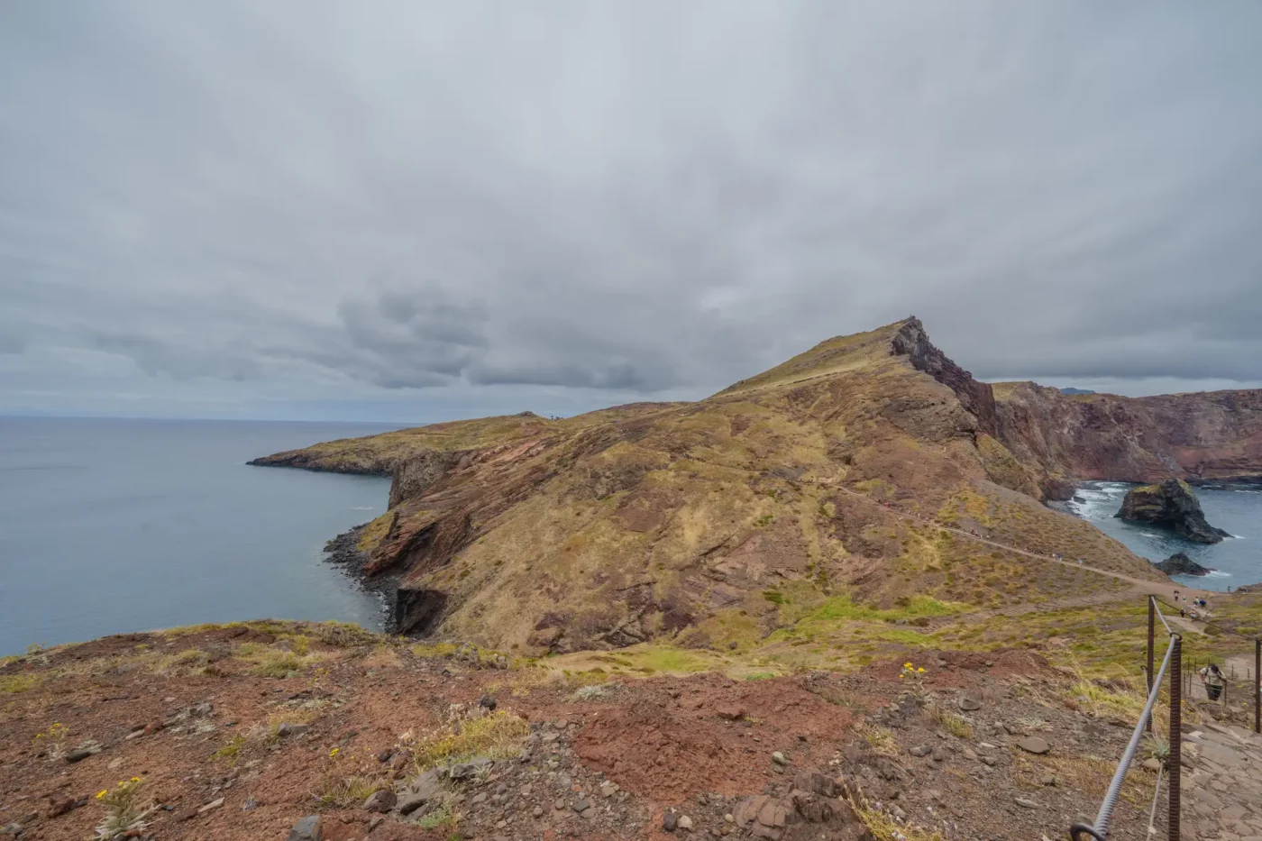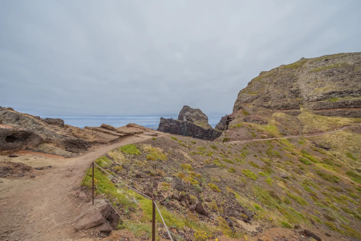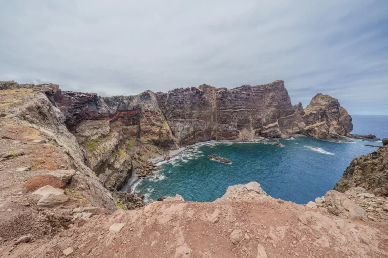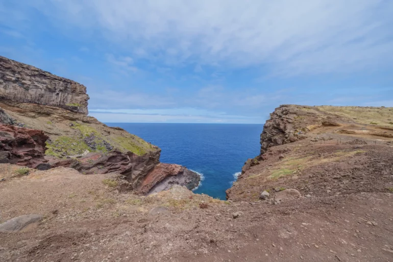 Szlak, wbrew pozorom, nie jest monotonną wędrówką przez pustkowie. Ścieżka wije się, wznosi i opada, co chwilę odsłaniając nowe, zapierające dech w piersiach panoramy. Z każdym zakrętem otwiera się widok na ukryte zatoczki, gdzie turkusowa woda obmywa czarne, kamieniste plaże, niedostępne z lądu. To dzika symfonia natury w jej najczystszej postaci. Patrząc w dal, przy dobrej widoczności, na horyzoncie można dostrzec zarys sąsiedniej wyspy Porto Santo oraz surowe sylwetki niezamieszkanych Ilhas Desertas. Stojąc tam, na wąskim grzbiecie półwyspu, z oceanem po obu stronach, człowiek czuje się mały wobec potęgi żywiołów.