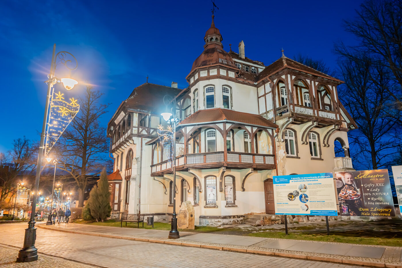 Do dziś w Świeradowie-Zdroju można podziwiać zabytkowe budynki pamiętające czasy świetności uzdrowiska. Szczególnie urokliwie prezentują się one wieczorem, kiedy oświetlenie podkreśla detale architektoniczne i tworzy wyjątkową atmosferę nocnych spacerów.
