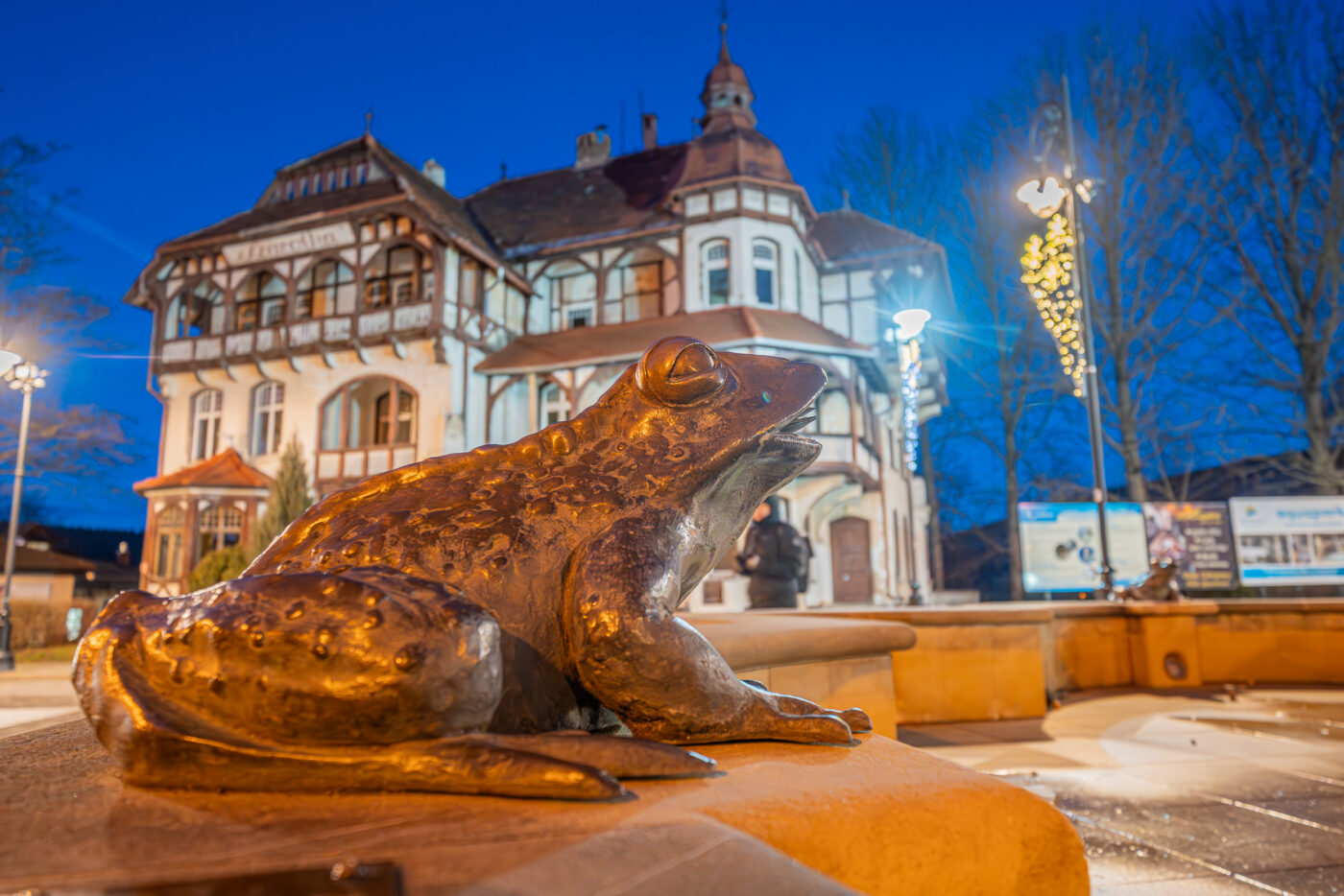 Świeradów-Zdrój to jedno z najbardziej urokliwych uzdrowisk Dolnego Śląska, znane nie tylko z wyjątkowych właściwości swoich wód, ale także z nietypowego symbolu – żaby „Kwisi”. Spacerując po centrum miasta, trudno jej nie zauważyć. Figurka żaby pojawia się w wielu miejscach – na skwerach, przy fontannach, w witrynach sklepów. Turyści chętnie fotografują się z tym sympatycznym symbolem, a motyw żaby można znaleźć również na pocztówkach, magnesach i innych pamiątkach.