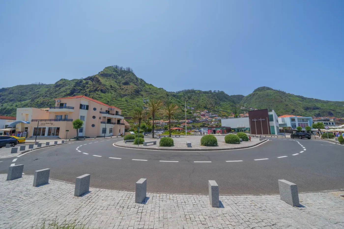 Zjeżdżając z górskich serpentyn w stronę północnego wybrzeża, krajobraz ulegał diametralnej zmianie. Mgła ustąpiła miejsca ostremu słońcu, a zieleń lasów została zastąpiona przez surowy majestat czarnej, wulkanicznej skały i bezkresny błękit oceanu. Naszym celem było Porto Moniz – miasteczko, które powstało na styku żywiołów.