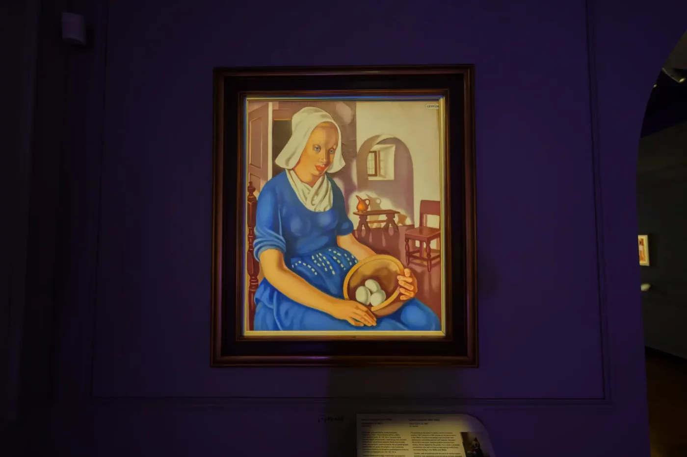 Jej styl jest nie do podrobienia. To esencja tego, co w art déco najlepsze. Zapomnijcie o subtelnych niedopowiedzeniach. Sztuka Łempickiej jest odważna, zmysłowa i uderzająco nowoczesna. Charakteryzują ją ostre, niemal rzeźbiarskie kontury, które nadają postaciom monumentalny, posągowy wygląd. Kolory są nasycone, czyste, a światło – teatralne i dramatyczne, wydobywające chłodny, metaliczny blask skóry i luksusowych tkanin.