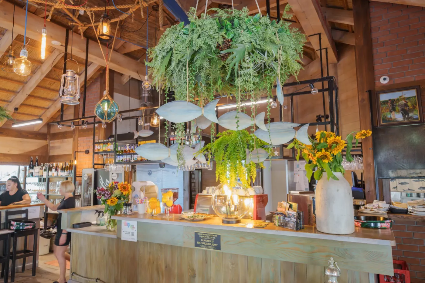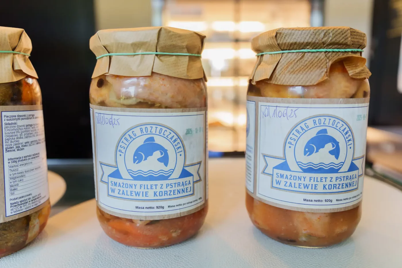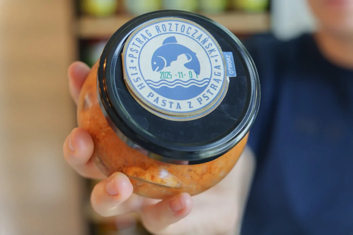 To jednak nie koniec kulinarnej przygody. „Chata Rybaka” pełni również funkcję lokalnej spiżarni, co jest dowodem na to, jak głęboko zakorzenione jest to miejsce w lokalnej społeczności. Po zakończonym posiłku trudno oprzeć się pokusie, by zabrać kawałek Roztocza ze sobą. Na ladzie czekają świeżo wędzone ryby, których aromat unosi się w całym pomieszczeniu. Obok nich znajdziemy autorskie pasty rybne – idealne na kanapki po powrocie do domu – a także pierogi z pstrągiem, będące ciekawym połączeniem tradycyjnej polskiej potrawy z regionalnym skarbem.