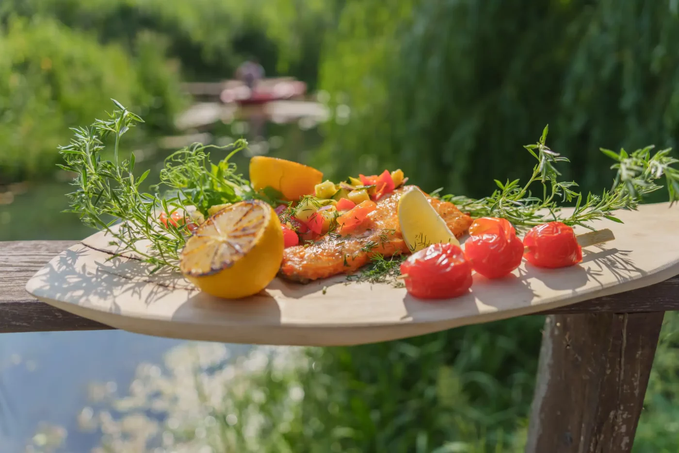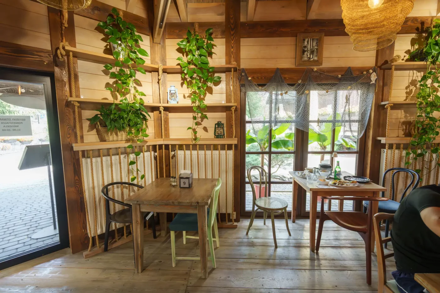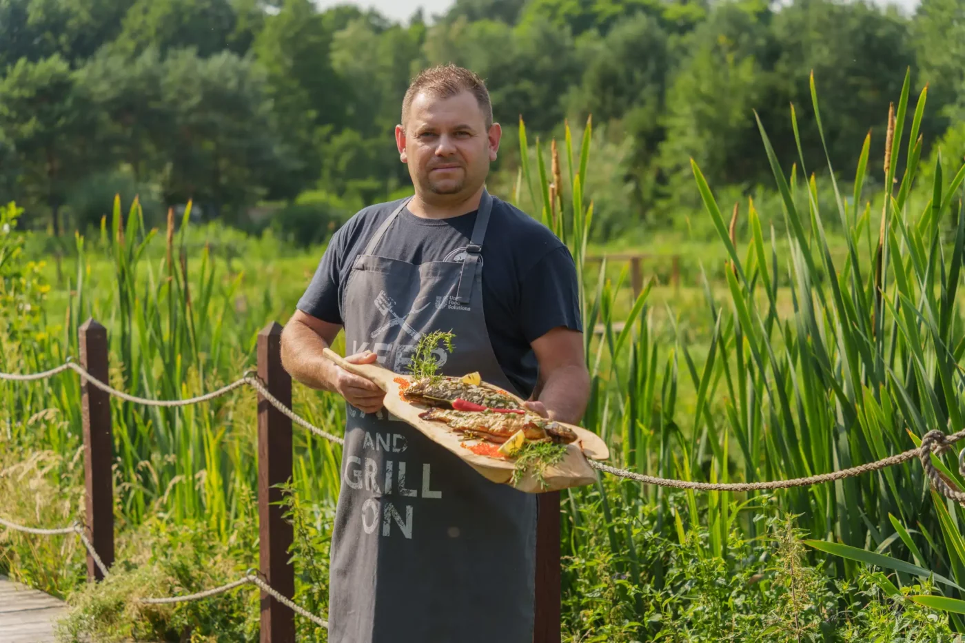 Naszym celem stała się „Chata Rybaka”, miejsce, które w Bondyrzu urosło już do rangi legendy. To znacznie więcej niż zwykła restauracja czy smażalnia. To przystań dla tych, którzy po trudach podróży czy godzinach spędzonych w kajaku marzą o posiłku prawdziwym, bezpretensjonalnym i przygotowanym z najwyższym szacunkiem dla głównego składnika. Wystrój nawiązuje do tradycji, ale to, co dzieje się na talerzu, jest najważniejsze. Prosto z wody, świeżo uwędzony lub przygotowany na maśle – pstrąg w każdym wydaniu smakuje tu po prostu wybornie. Jego smak jest czysty, głęboki, podkreślony jedynie prostymi dodatkami, które nie próbują go zdominować.