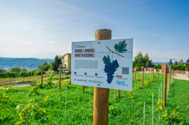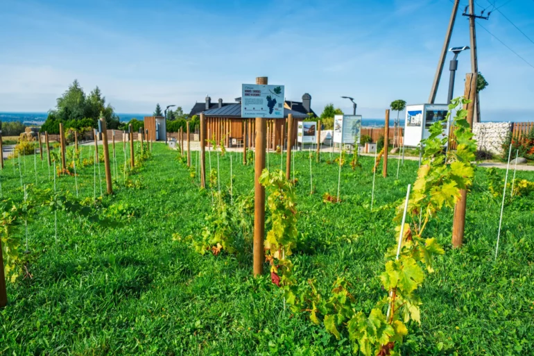Ale Golgota to nie tylko wieża i widoki. Po zejściu na dół czeka na Was wisienka na torcie, która dodaje temu miejscu niepowtarzalnego, małopolskiego charakteru. Tuż obok wieży znajdziecie maleńką winnicę samorządową enoTARNOWSKIE. To świetna okazja, by spróbować lokalnych win i zobaczyć, jak region tarnowski, nazywany nie bez powodu „polskim Piemontem”, rozwija swoje winiarskie tradycje. Warto posmakować i docenić trud włożony w te szlachetne trunki.