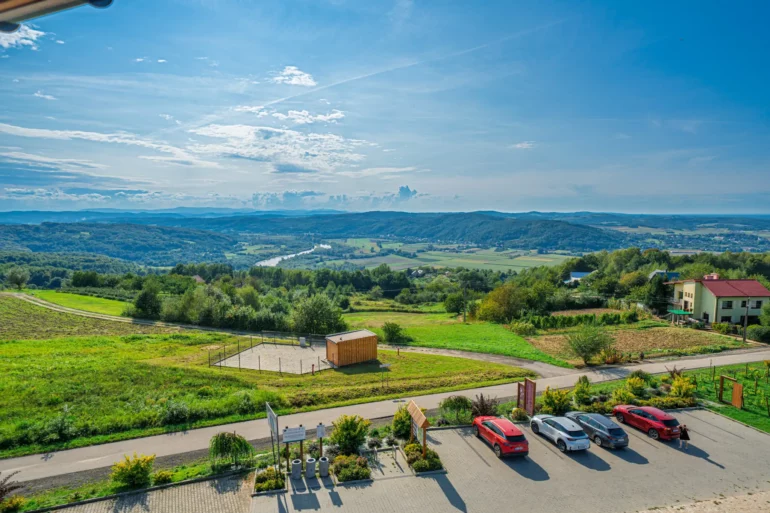 Dolina Dunajca, pasma górskie – wszystko stąd wygląda inaczej. Przy dobrej pogodzie, Wasze oko sięgnie daleko. Po drugiej zaś stronie: Tarnów – perła renesansu.