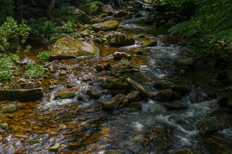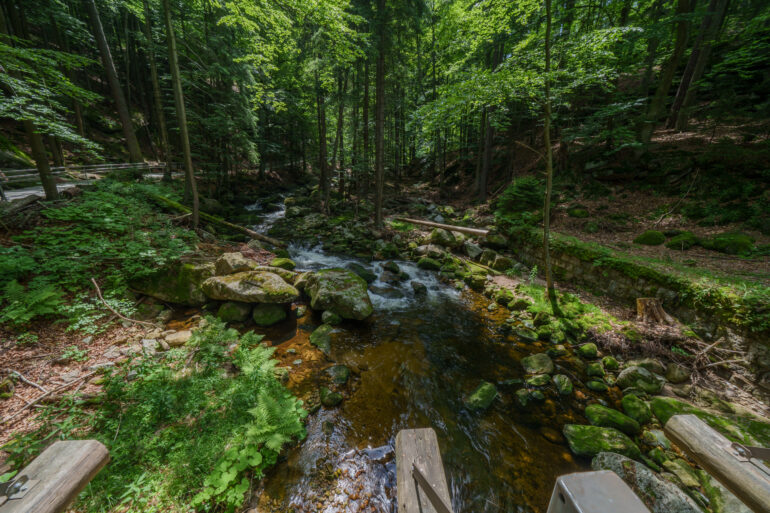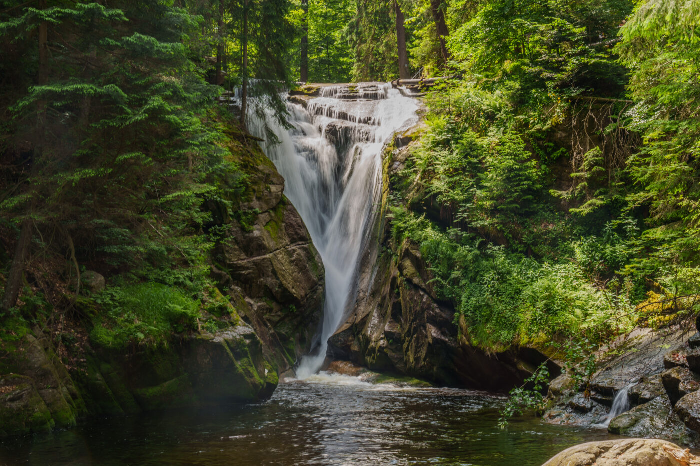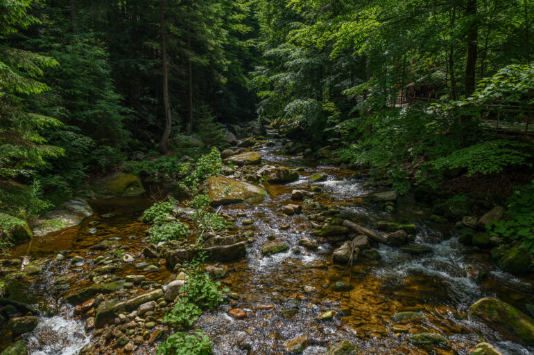 Otoczenie wodospadu to królestwo szmaragdowego mchu porastającego granitowe bloki i paproci zwieszających się ze skalnych półek. Gra światła, które przebija się przez korony drzew, sprawia, że sceneria zmienia się z godziny na godzinę. To właśnie tutaj można zrozumieć, dlaczego Karkonosze od wieków inspirowały artystów i poetów.