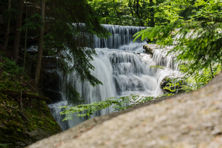 - Detal i Kontekst: Nie skupiajcie się wyłącznie na samej kaskadzie. Poszukajcie detali – porośniętych mchem kamieni, kropli wody na liściach paproci, ciekawych formacji skalnych. Pokażcie wodospad w szerszym kontekście leśnego wąwozu.