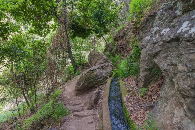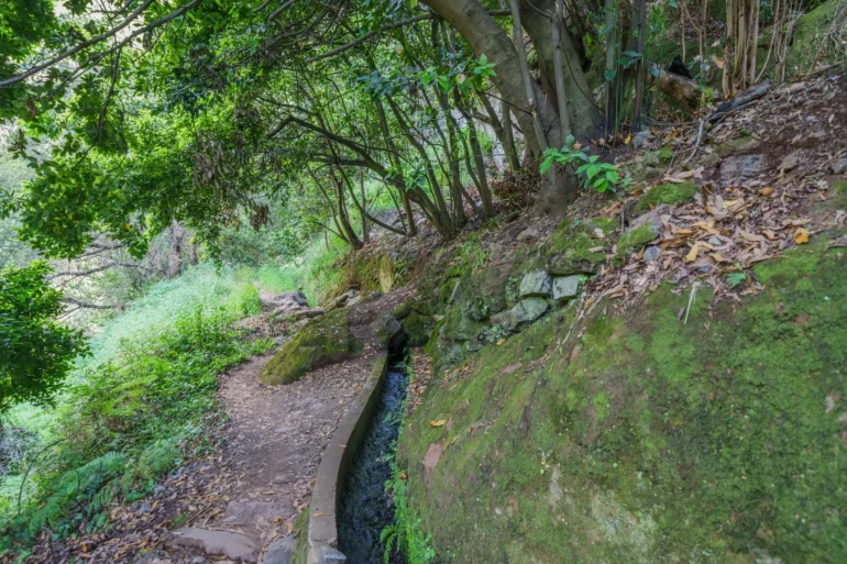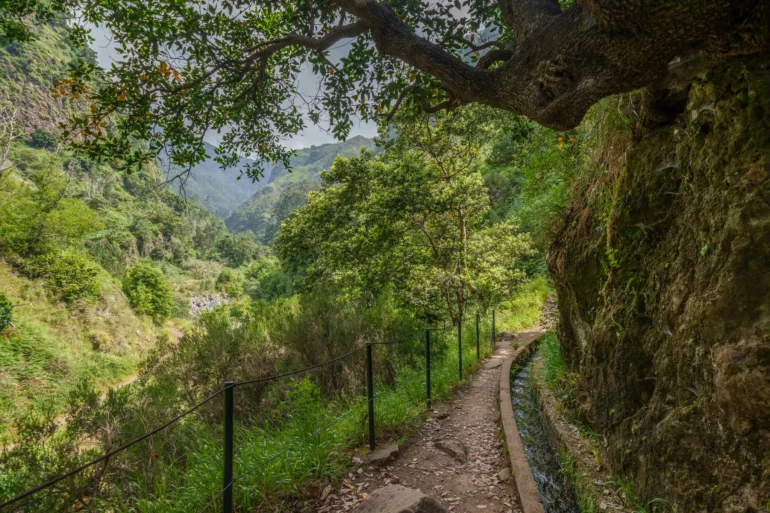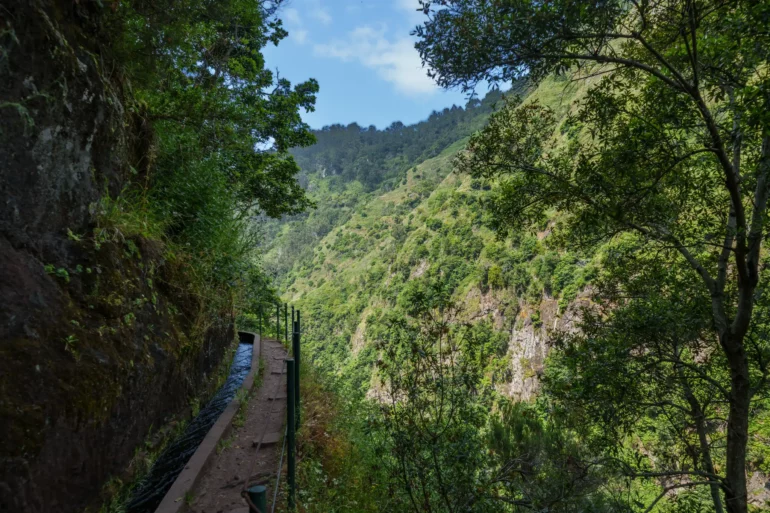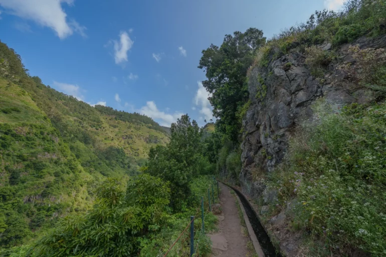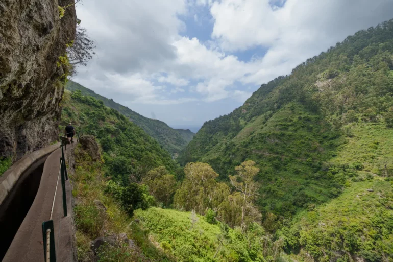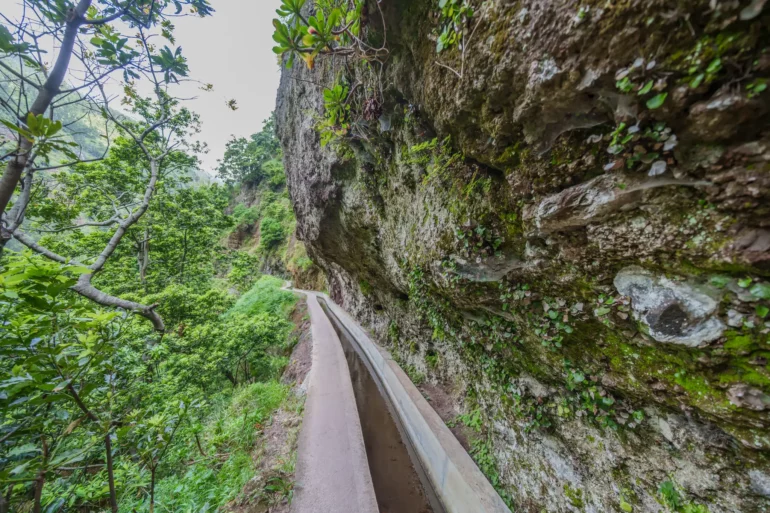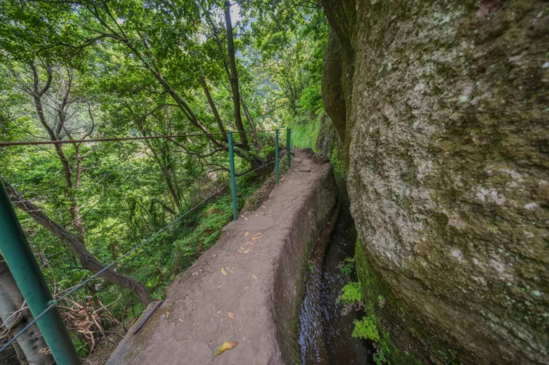 Pierwszy etap wędrówki prowadzi wzdłuż Levada do Moinho, czyli „Lewady Młyńskiej”. Nazwa nie jest przypadkowa. To starsza i bardziej dzika z dwóch siostrzanych lewad. Ścieżka, często wykuta w skale, wije się przez gęste, wilgotne lasy wawrzynowe, gdzie słońce z trudem przebija się przez baldachim liści. Powietrze pachnie tu ziemią i roślinnością. Co krok mijamy ruiny starych kamiennych młynów wodnych, które niegdyś napędzane były siłą płynącej w kanale wody. To cisi świadkowie czasów, gdy rolnictwo było tu fundamentem życia.