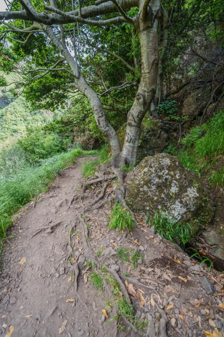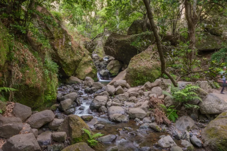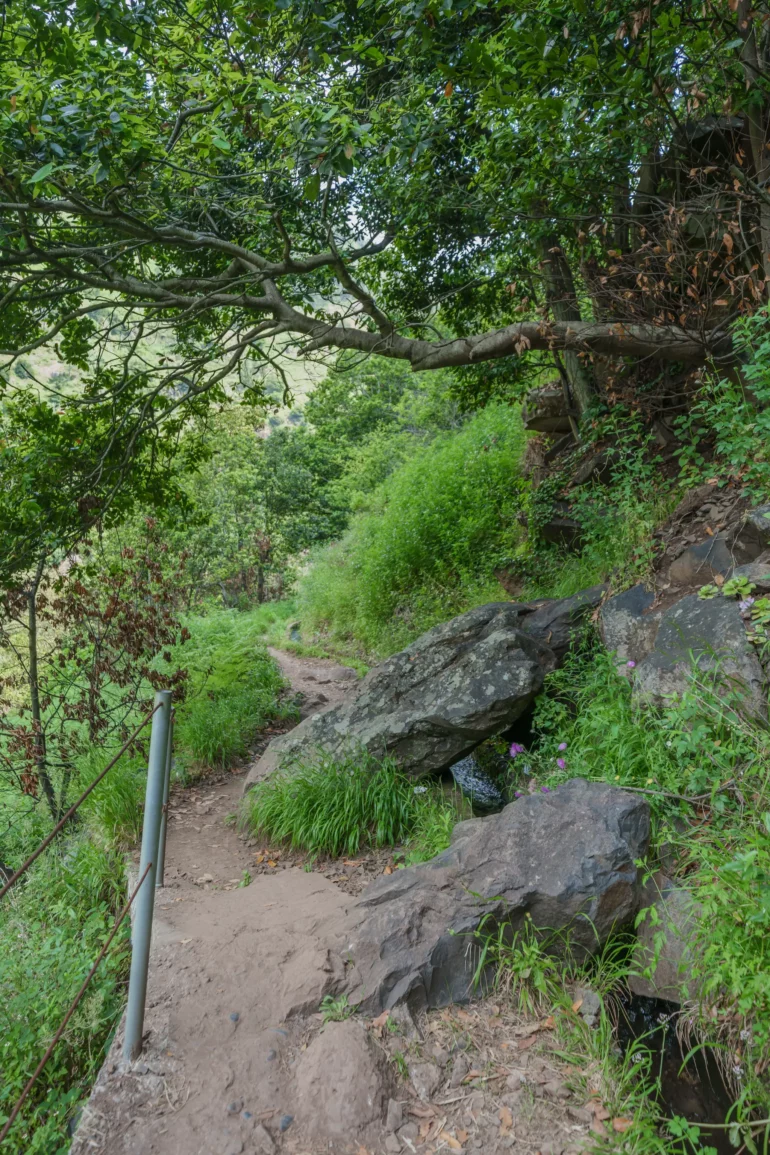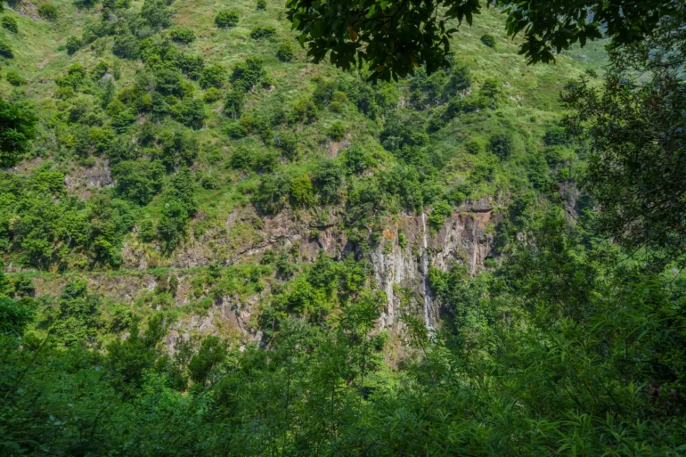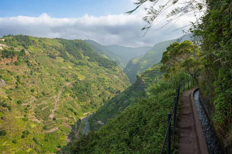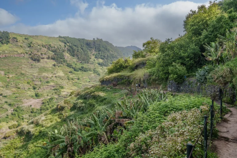 Pierwszy etap wędrówki prowadzi wzdłuż Levada do Moinho, czyli „Lewady Młyńskiej”. Nazwa nie jest przypadkowa. To starsza i bardziej dzika z dwóch siostrzanych lewad. Ścieżka, często wykuta w skale, wije się przez gęste, wilgotne lasy wawrzynowe, gdzie słońce z trudem przebija się przez baldachim liści. Powietrze pachnie tu ziemią i roślinnością. Co krok mijamy ruiny starych kamiennych młynów wodnych, które niegdyś napędzane były siłą płynącej w kanale wody. To cisi świadkowie czasów, gdy rolnictwo było tu fundamentem życia.