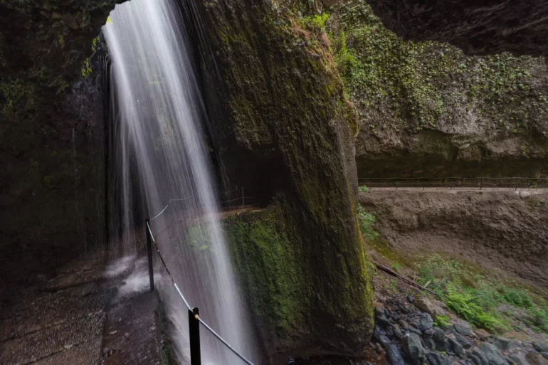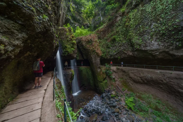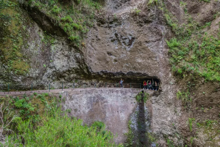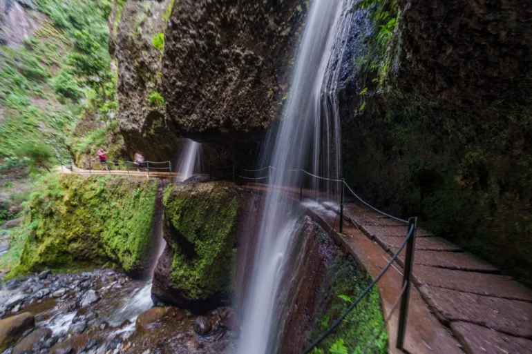 Największą atrakcją tego odcinka jest bez wątpienia imponujący wodospad, który z hukiem spada prosto na ścieżkę, tworząc naturalny prysznic i kurtynę wodną, za którą musimy przejść. To moment, który budzi dziecięcą radość i dostarcza adrenaliny. Dalej szlak prowadzi przez kilka wykutych w skale tuneli (warto mieć latarkę, choćby w telefonie) i odsłania panoramiczne widoki na dolinę Ponta do Sol i bezkresny błękit Atlantyku. Marsz po wysokiej, często niezabezpieczonej półce skalnej, z oceanem w tle, to esencja tego, co w Maderze najpiękniejsze.