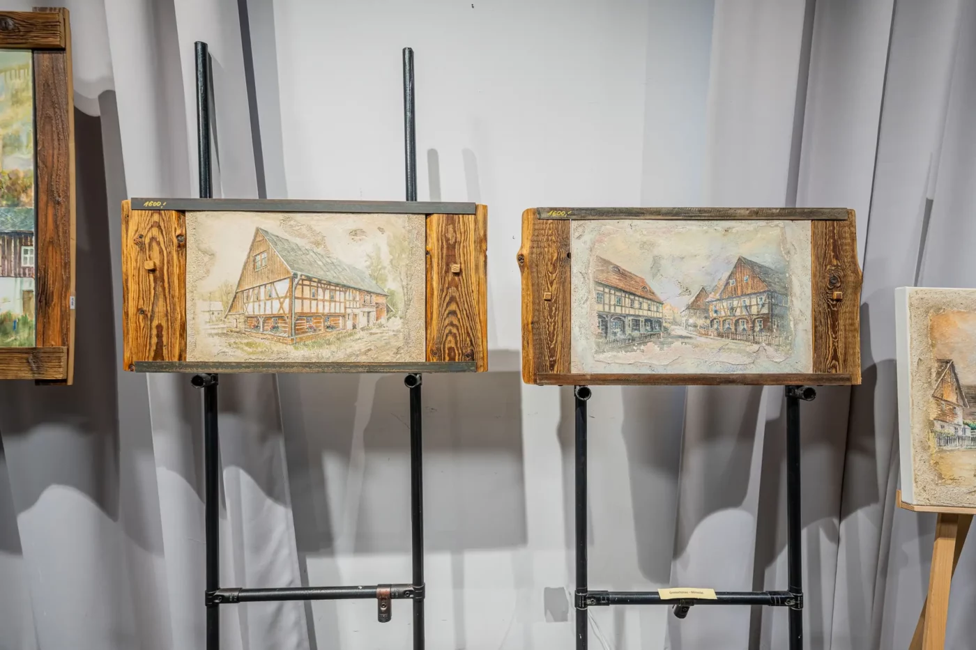 Artysta stworzył swój cykl malarski w nietypowej technice – obrazy powstały bezpośrednio na tynku, co nadaje im surowy, autentyczny charakter. Następnie każda praca została oprawiona w stare, odzyskane drewno. Ten materiał nie jest przypadkowy – pochodzi z rozebranych domów, które kiedyś stały w Szklarskiej Porębie i okolicach. Dzięki temu dzieła stają się nie tylko wizualnym zapisem historii, ale także fizycznym nośnikiem fragmentów przeszłości.