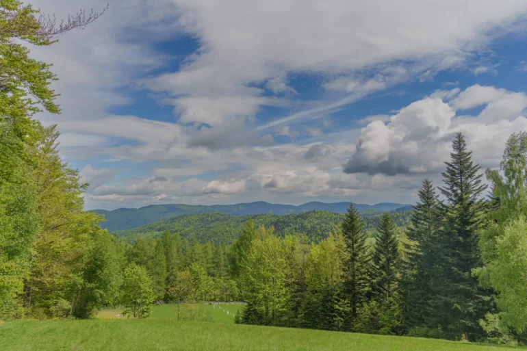 1. Start we Frycowej: Wędrówka rozpoczyna się w spokojnej miejscowości Frycowa. Początkowe kilometry prowadzą przez otwarte tereny i łąki, oferując szerokie panoramy na okoliczne wzgórza i doliny. To idealny moment, by złapać oddech przed wejściem w głąb lasu.