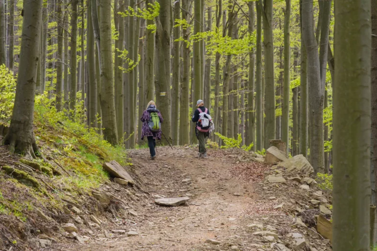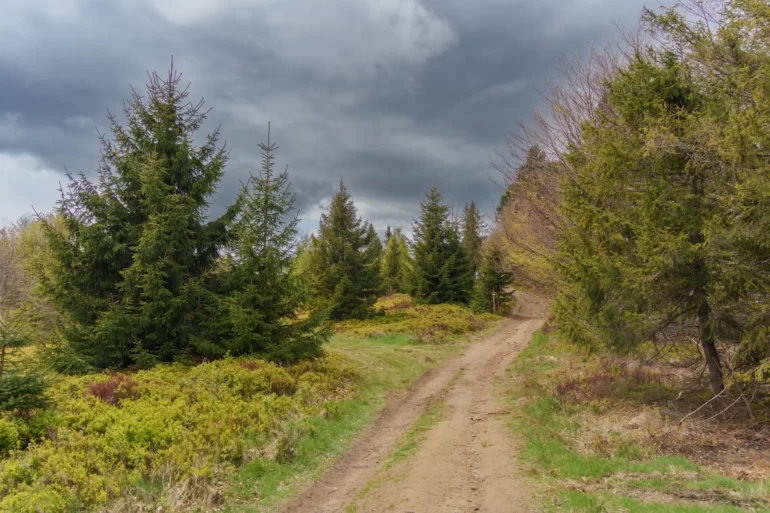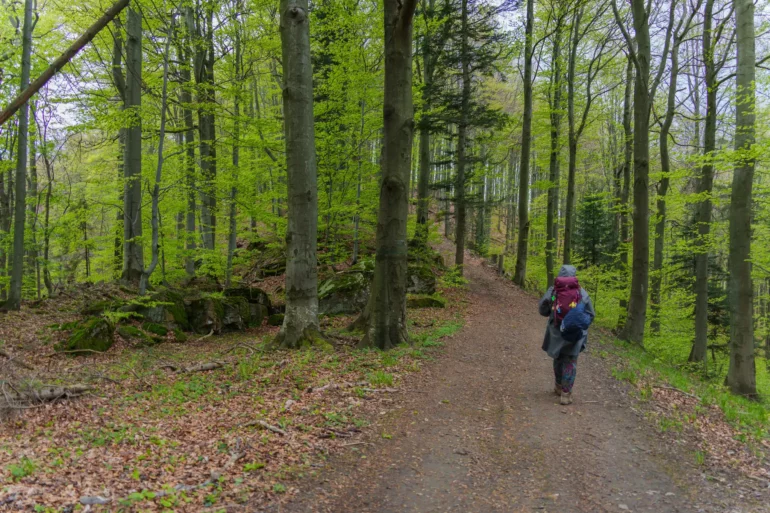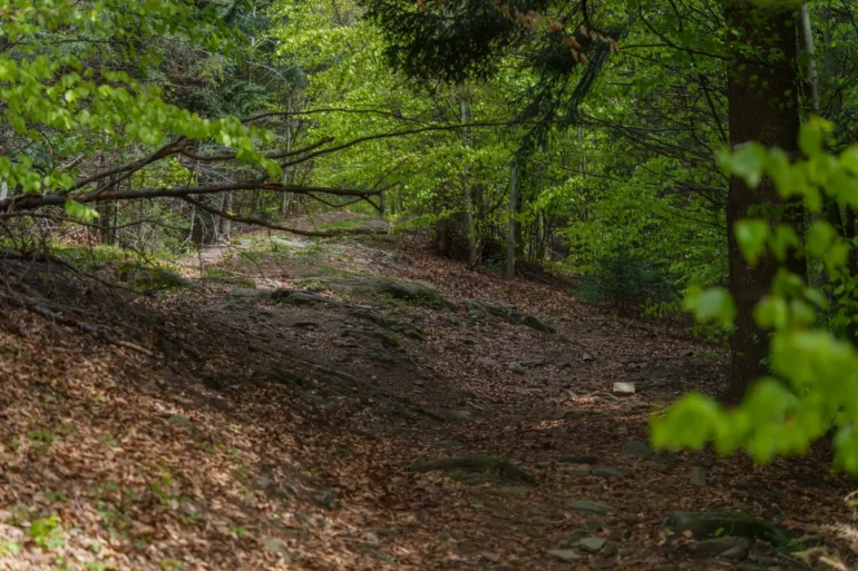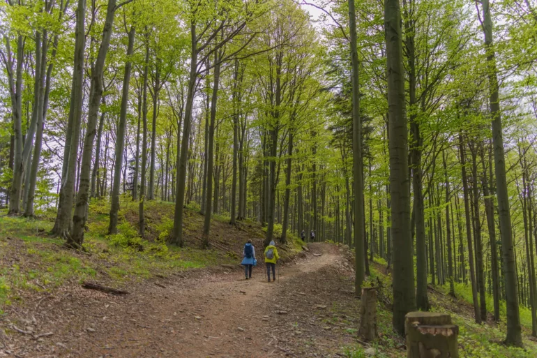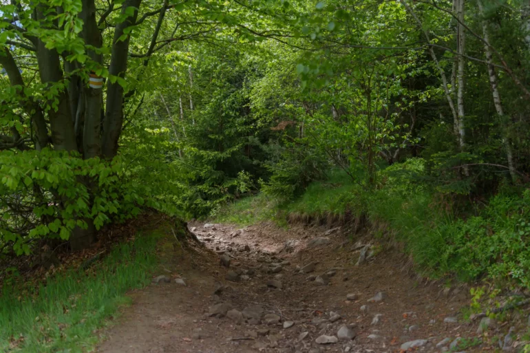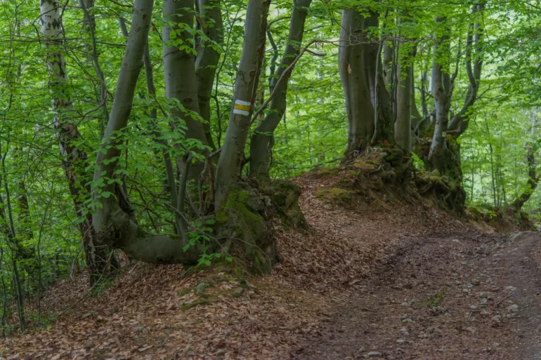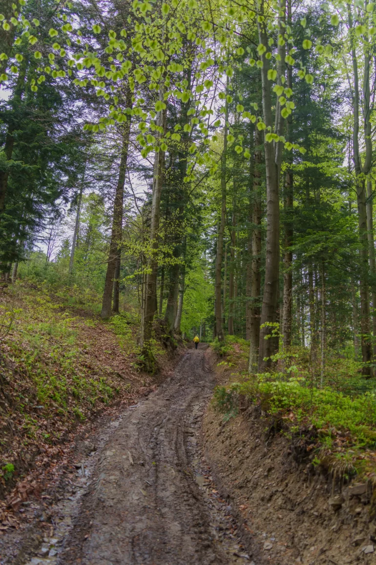 2. Podejście przez las bukowy: Po minięciu ostatnich zabudowań szlak wkracza do gęstego, majestatycznego lasu bukowego. Cisza, przerywana jedynie śpiewem ptaków, pozwala w pełni zanurzyć się w naturze i docenić potęgę Puszczy Karpackiej.