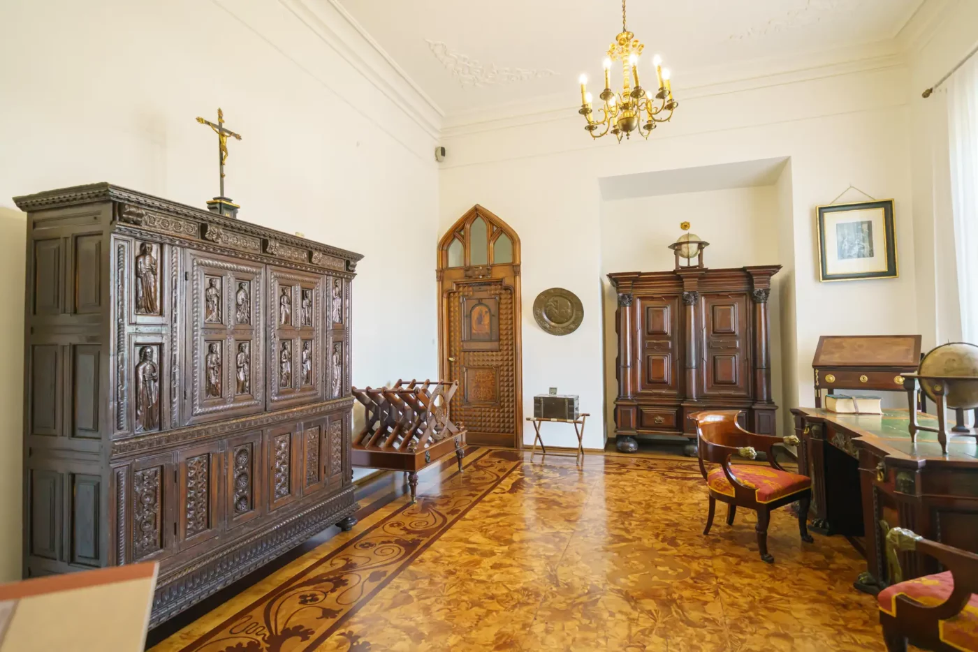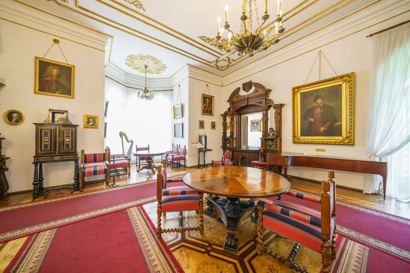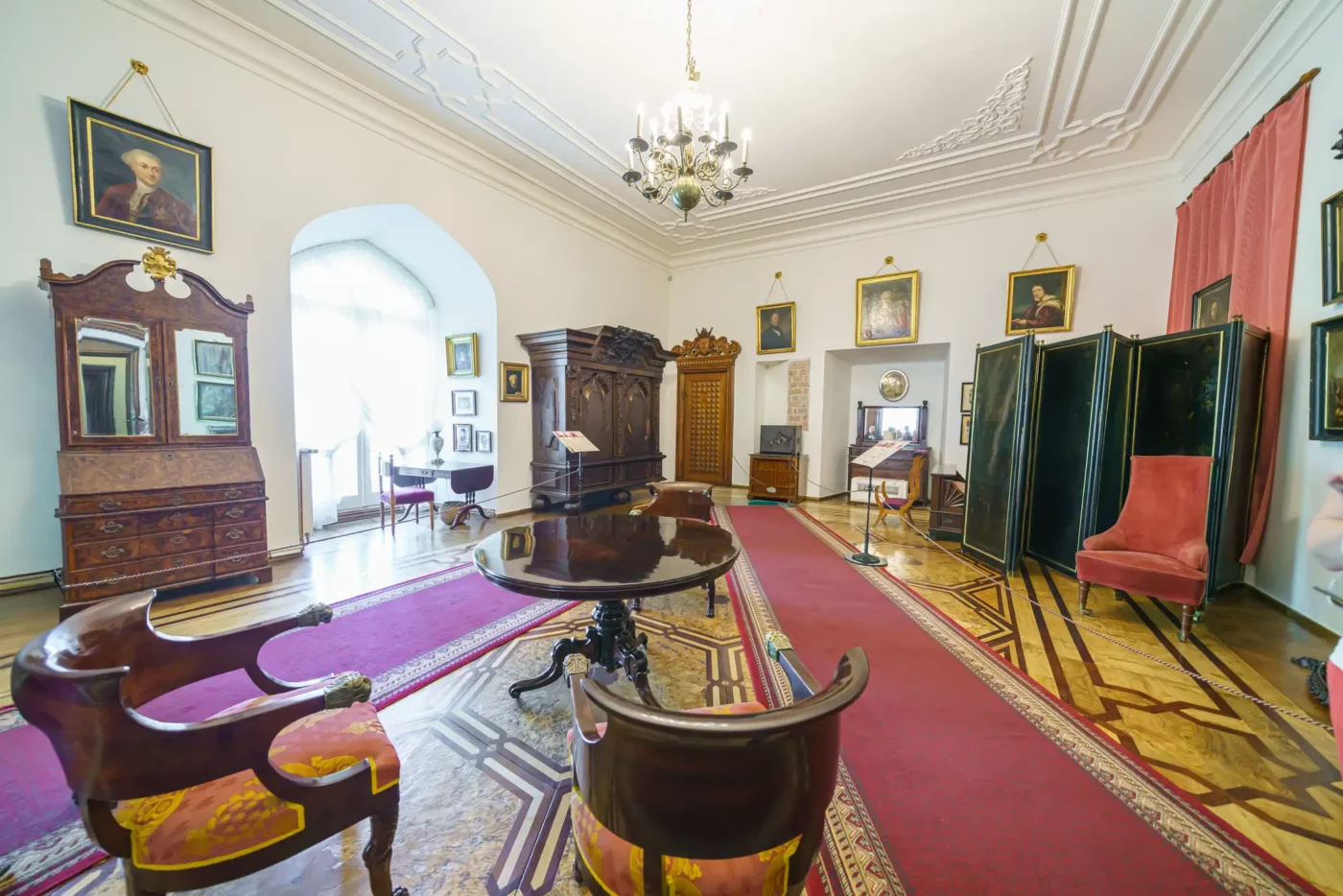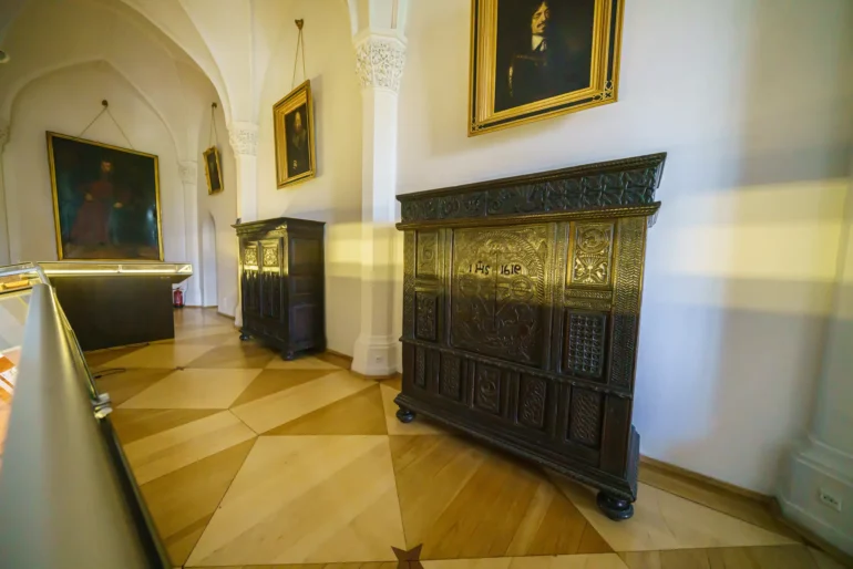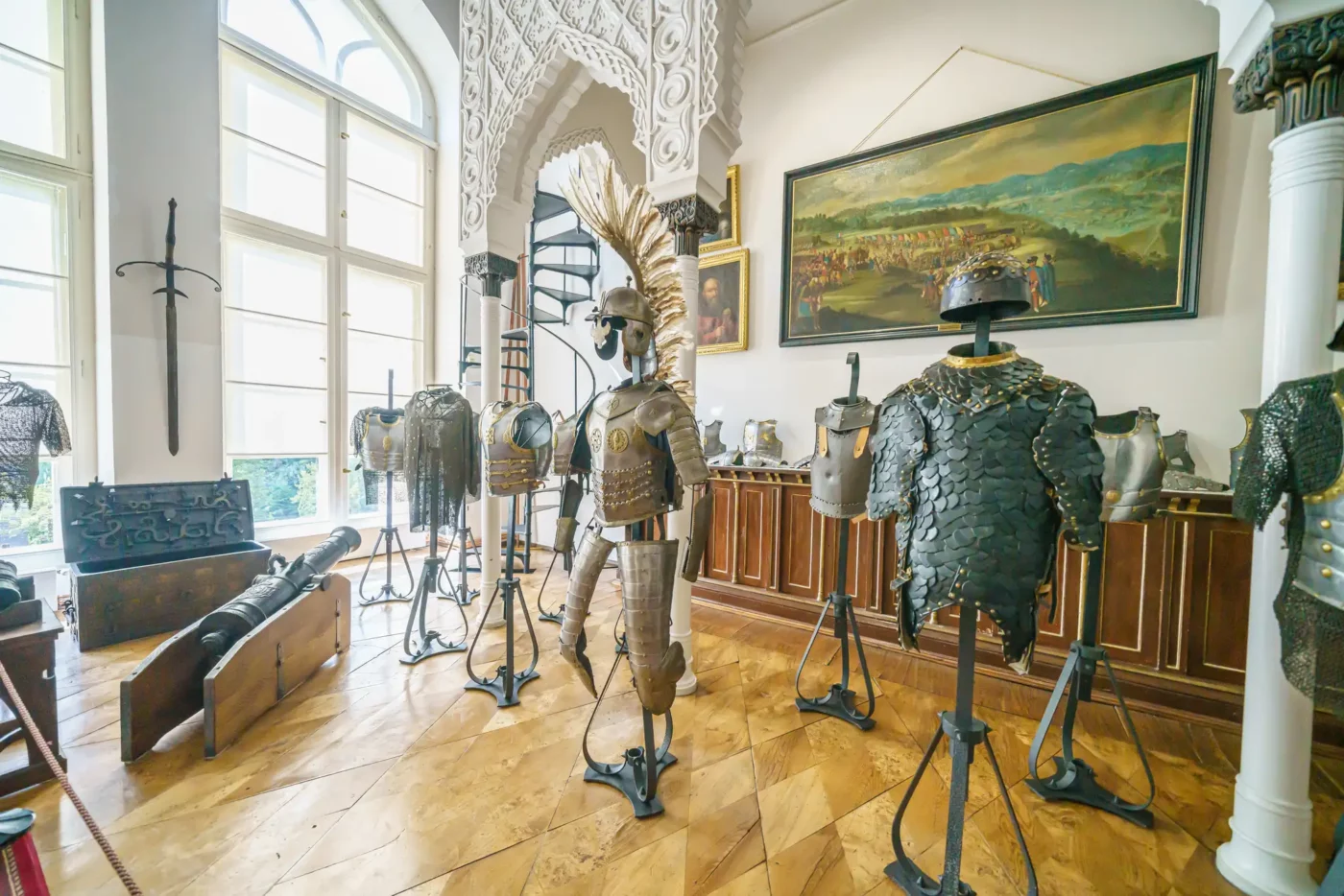 - Pokoje mieszkalne: Zwiedzając kolejne sale, takie jak Jadalnia, Salonik czy pokoje prywatne, możemy podziwiać oryginalne meble z różnych epok, kolekcje malarstwa polskiego i europejskiego, zbroje, a także liczne pamiątki rodzinne rodu Działyńskich i Zamoyskich.
