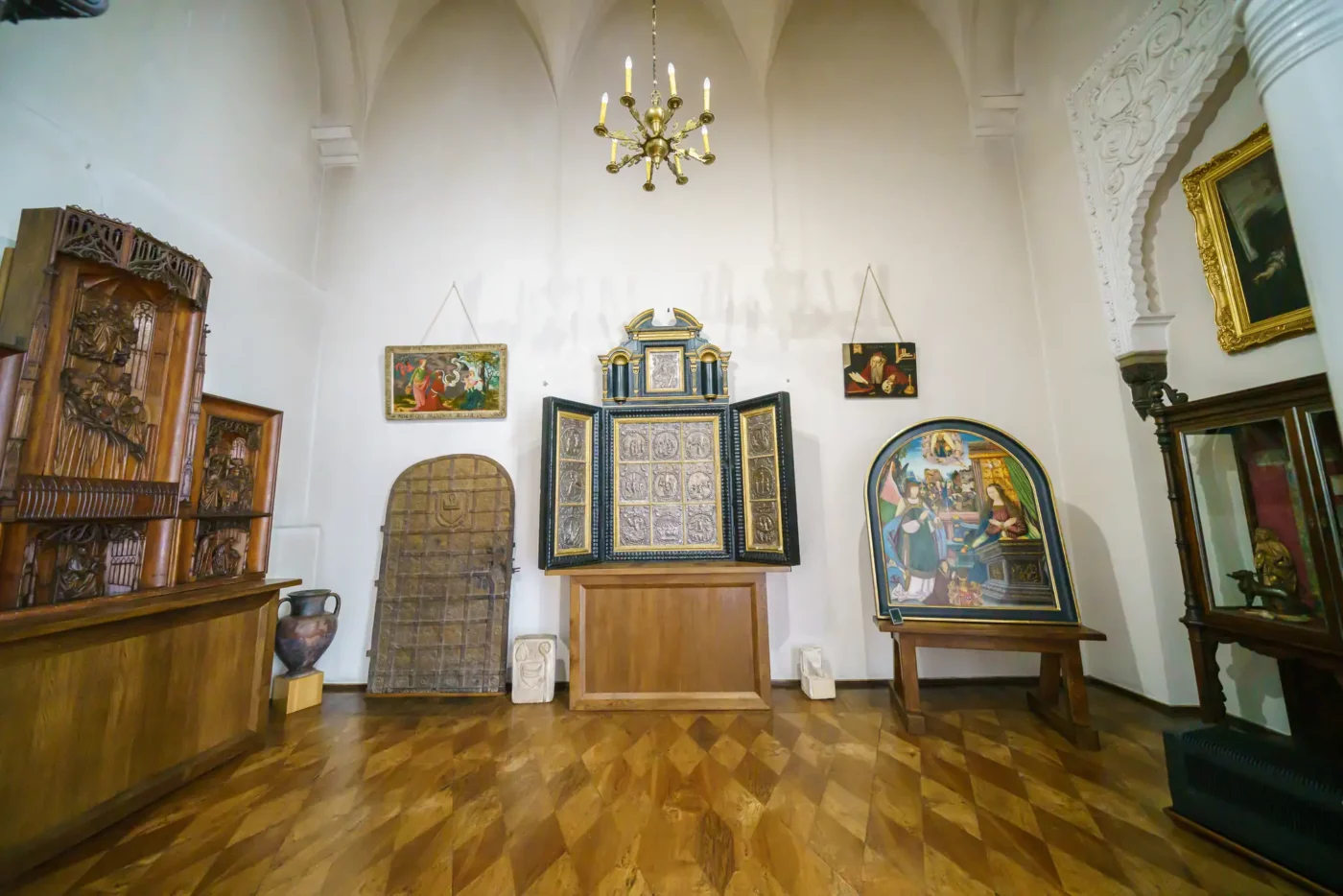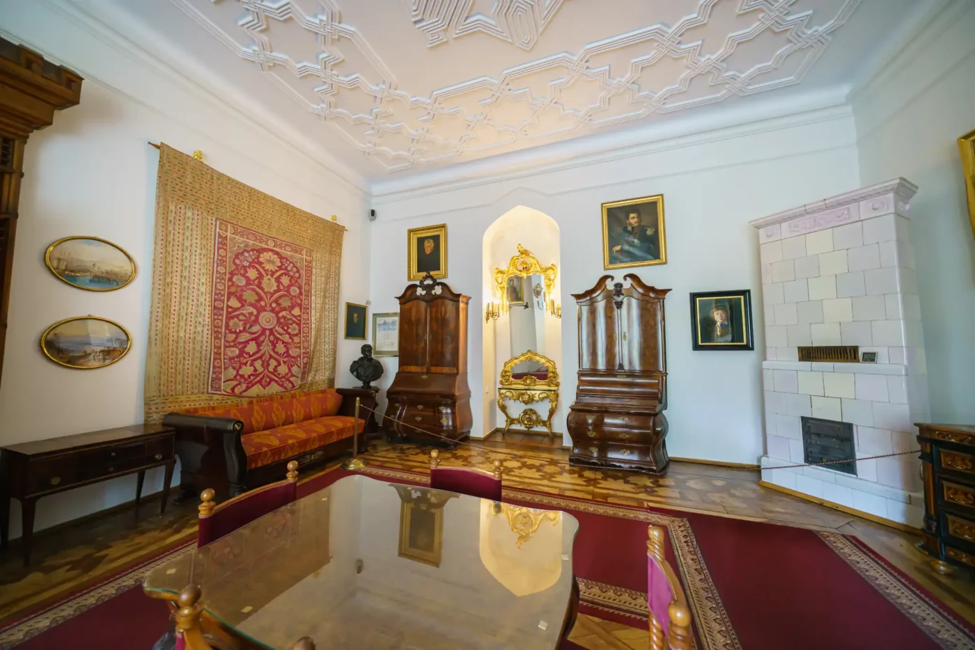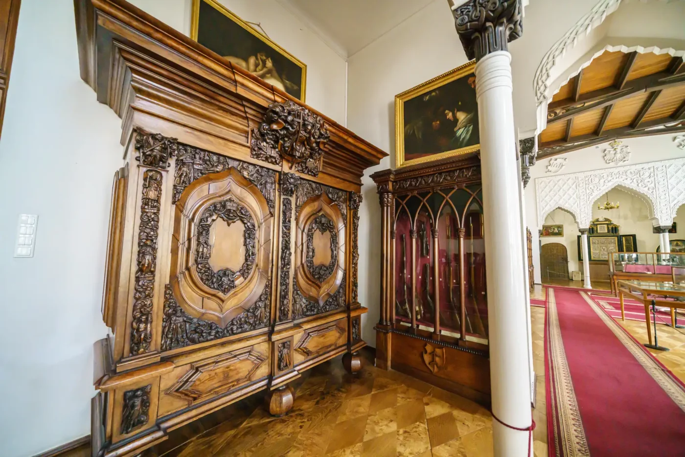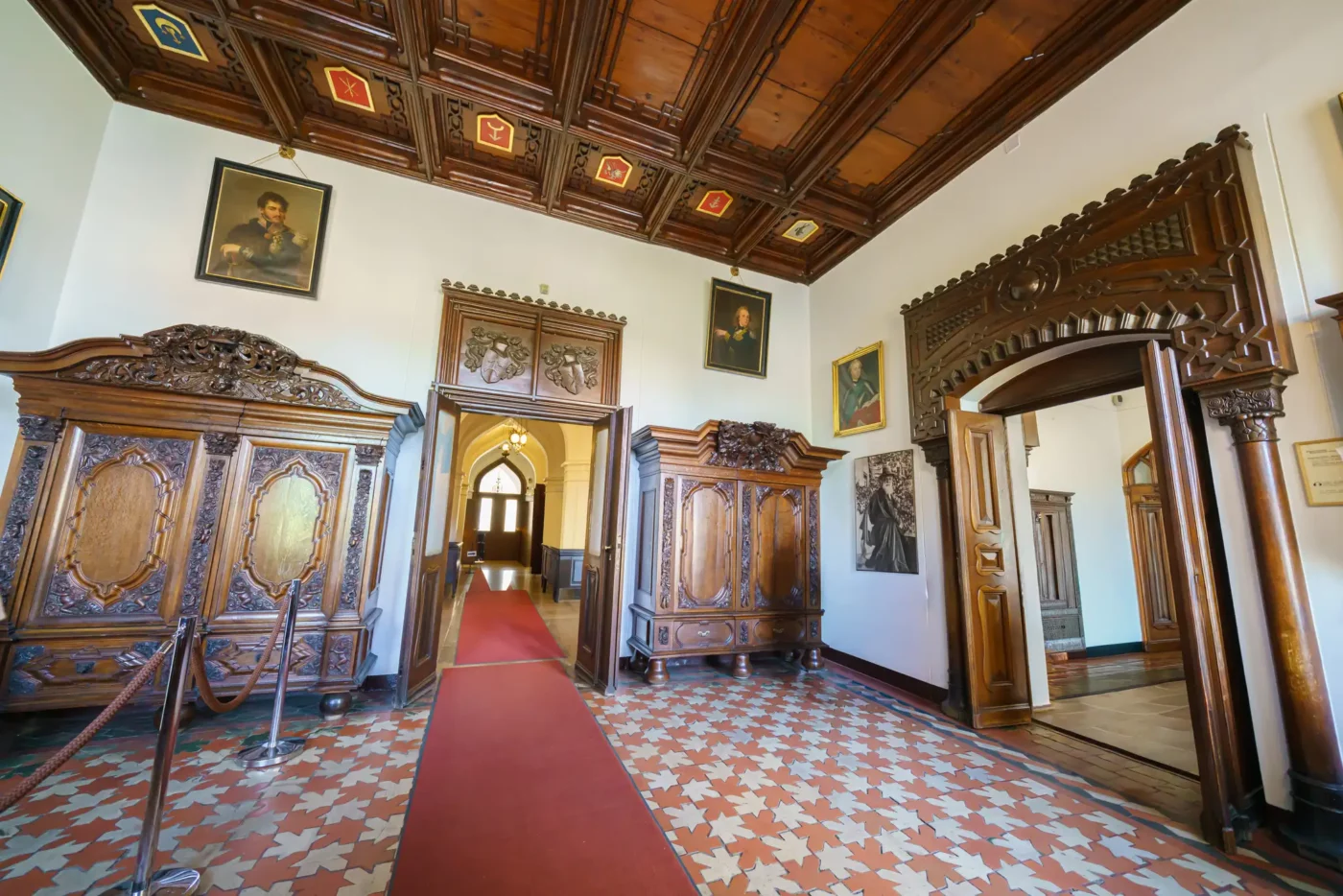 - Pokoje mieszkalne: Zwiedzając kolejne sale, takie jak Jadalnia, Salonik czy pokoje prywatne, możemy podziwiać oryginalne meble z różnych epok, kolekcje malarstwa polskiego i europejskiego, zbroje, a także liczne pamiątki rodzinne rodu Działyńskich i Zamoyskich.
