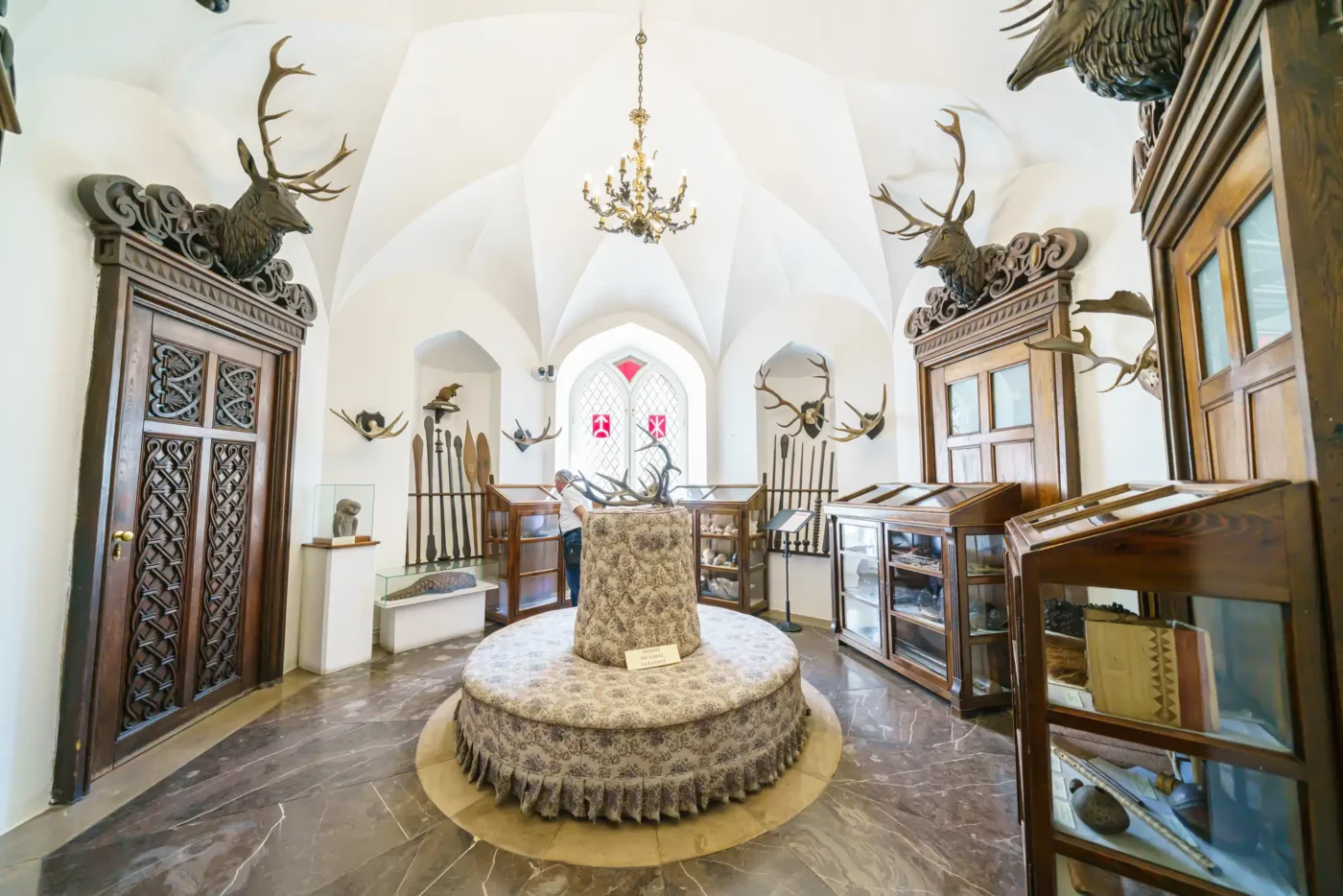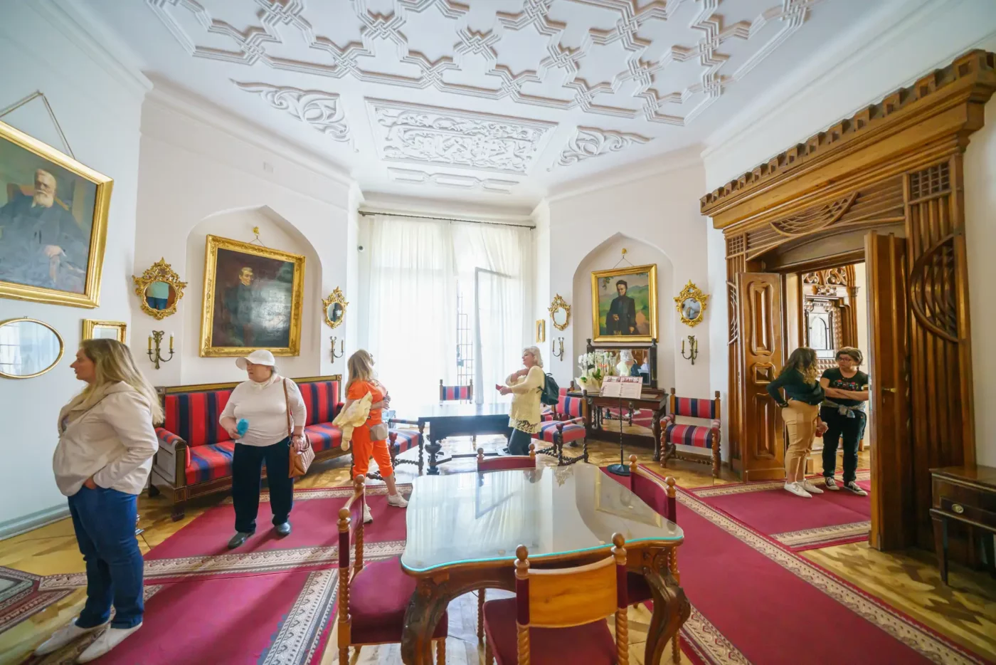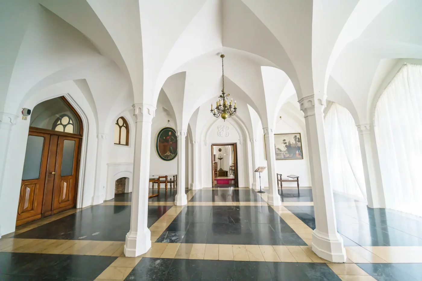 - Sala Mauretańska: To najbardziej reprezentacyjne i unikatowe pomieszczenie w zamku. Inspirowana architekturą Alhambry w Grenadzie, zachwyca misternymi sztukateriami, bogactwem detali i orientalnym klimatem. W jej wnętrzu prezentowana jest kolekcja pamiątek narodowych oraz dzieł sztuki.