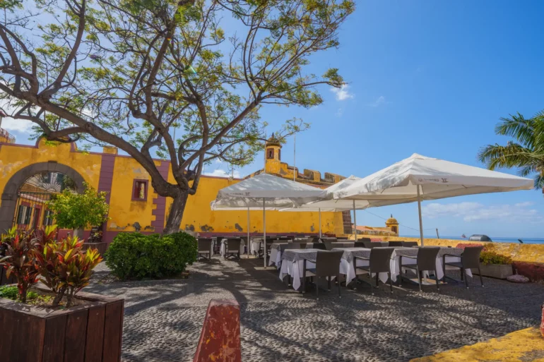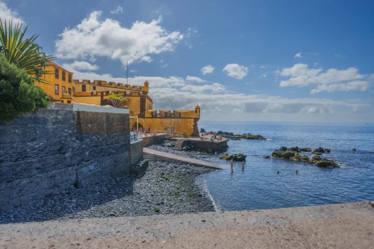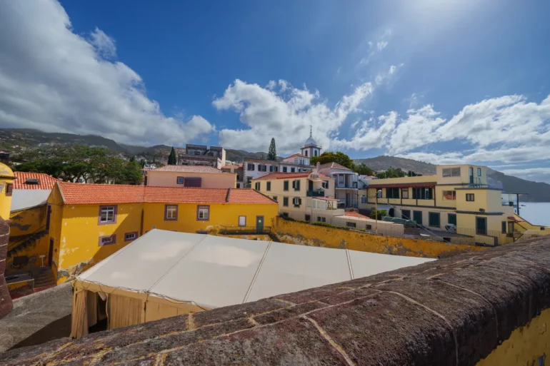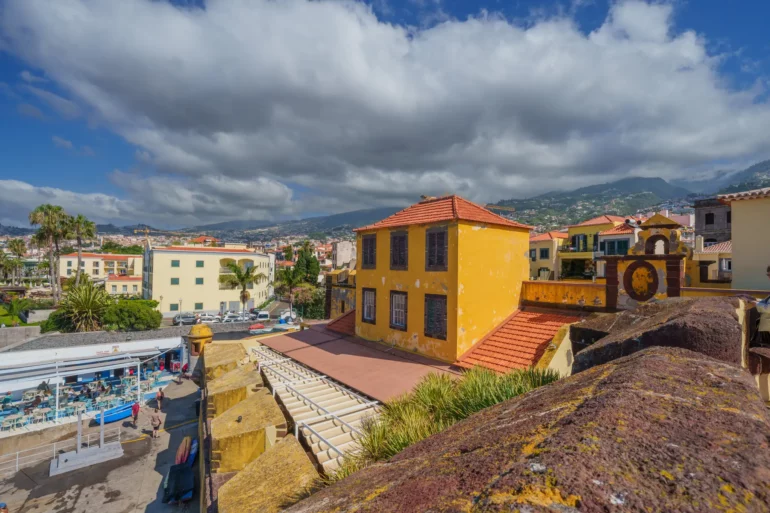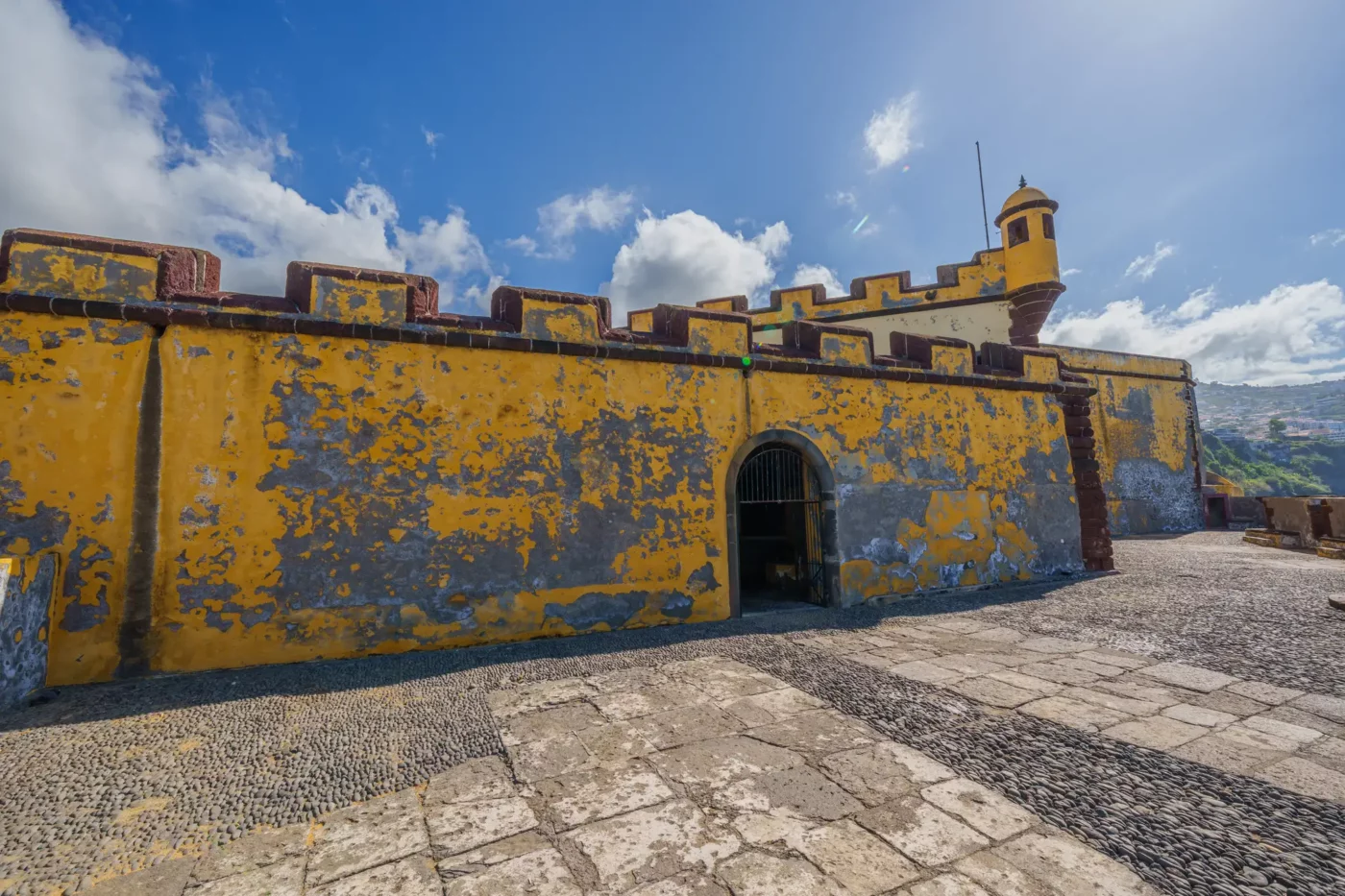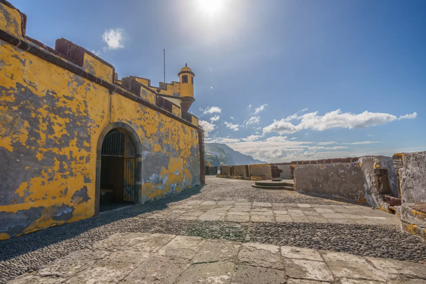 Wędrując labiryntem wąskich, brukowanych uliczek Zona Velha, historycznego serca Funchal, czujesz, jak czas zwalnia. Każdy krok po wyślizganych przez wieki kamieniach opowiada historię. Mijasz kolorowe drzwi, które lokalni artyści zmienili w małe dzieła sztuki w ramach projektu „Arte de Portas Abertas”, a z otwartych okien restauracji dobiega zapach grillowanej ryby i czosnku. I wtedy, na samym końcu nadmorskiej promenady, gdzie miasto styka się z oceanem, Twoim oczom ukazuje się on – potężna, skąpana w słońcu bryła o intensywnie żółtym kolorze. To Fort São Tiago, milczący świadek burzliwej przeszłości Madery.