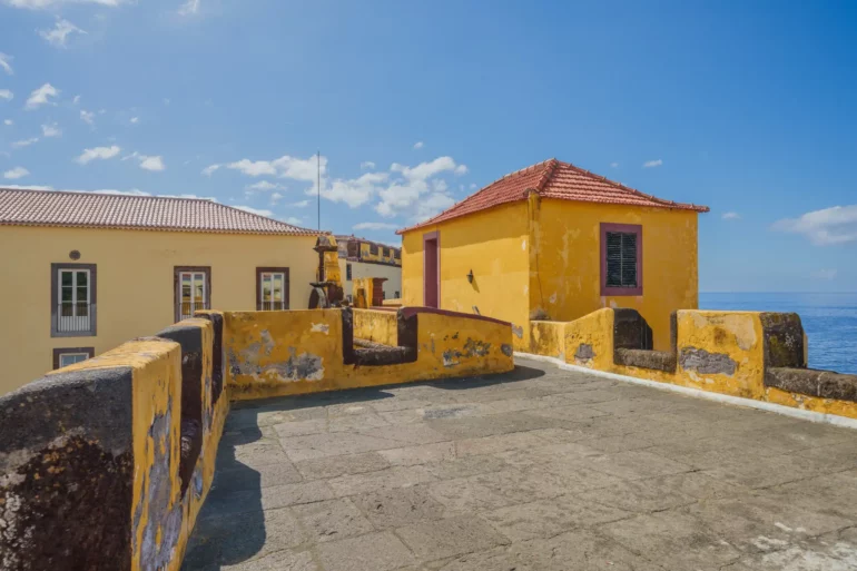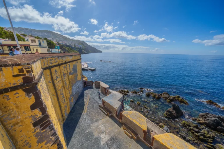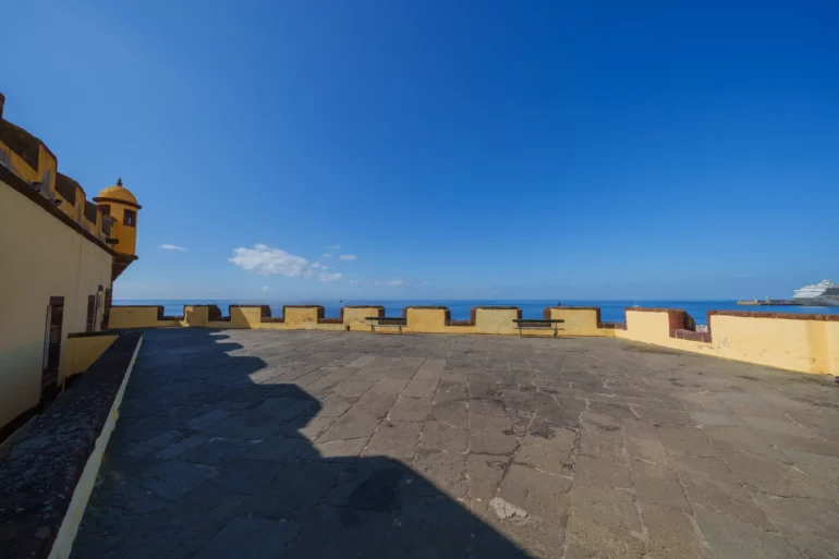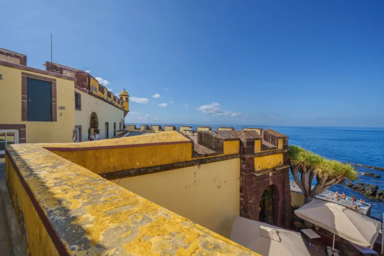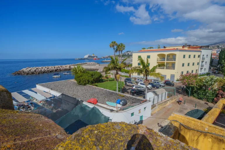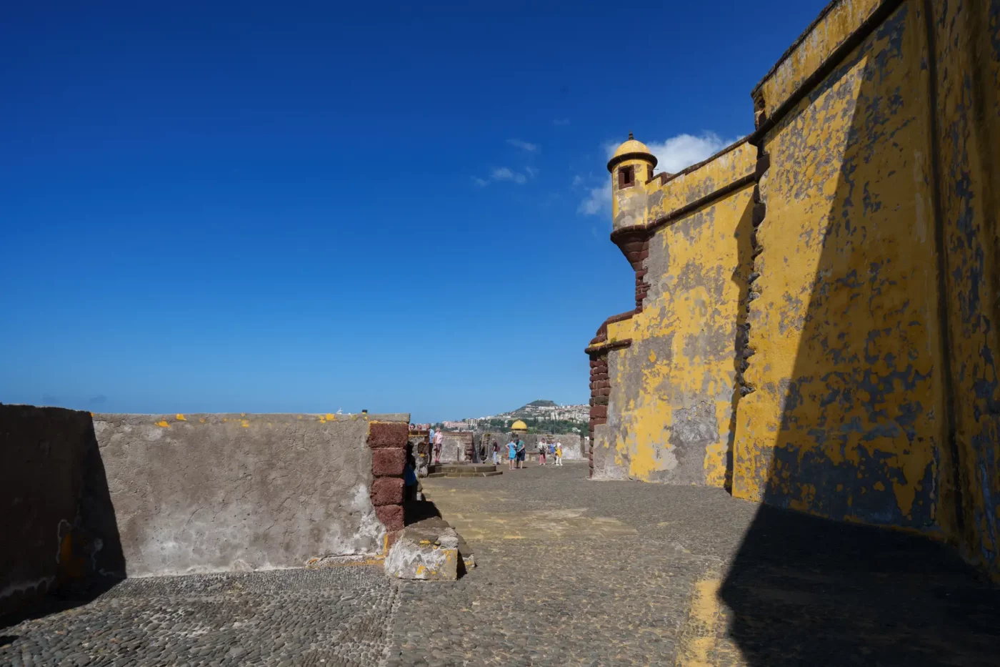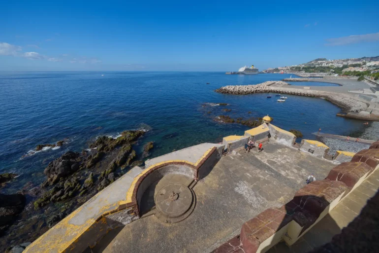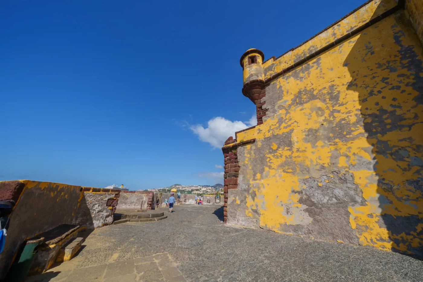 Jednak Fort São Tiago to nie tylko lekcja historii. To przede wszystkim jeden z najbardziej spektakularnych punktów widokowych w Funchal. Z jego murów roztacza się zapierająca dech w piersiach panorama, która łączy w sobie kilka światów. Z jednej strony widać potężny port, do którego regularnie zawijają jedne z największych wycieczkowców świata. Z drugiej rozciąga się bezkresny, lazurowy ocean, a przy dobrej pogodzie na horyzoncie można dostrzec zarys niezamieszkanych wysp Desertas. Kontrast między monumentalną, żółtą fortecą a głębokim błękitem wody tworzy scenerię, która na długo pozostaje w pamięci i jest wymarzonym tłem dla fotografii.